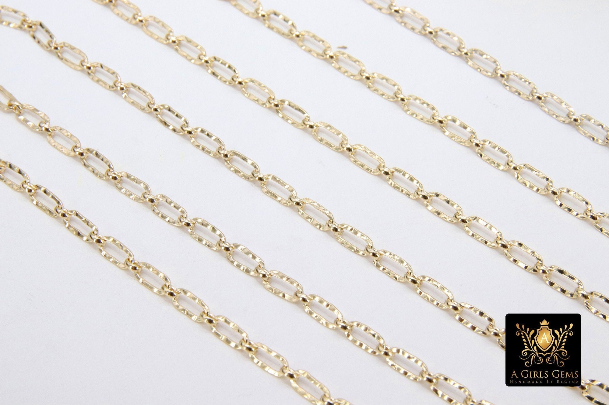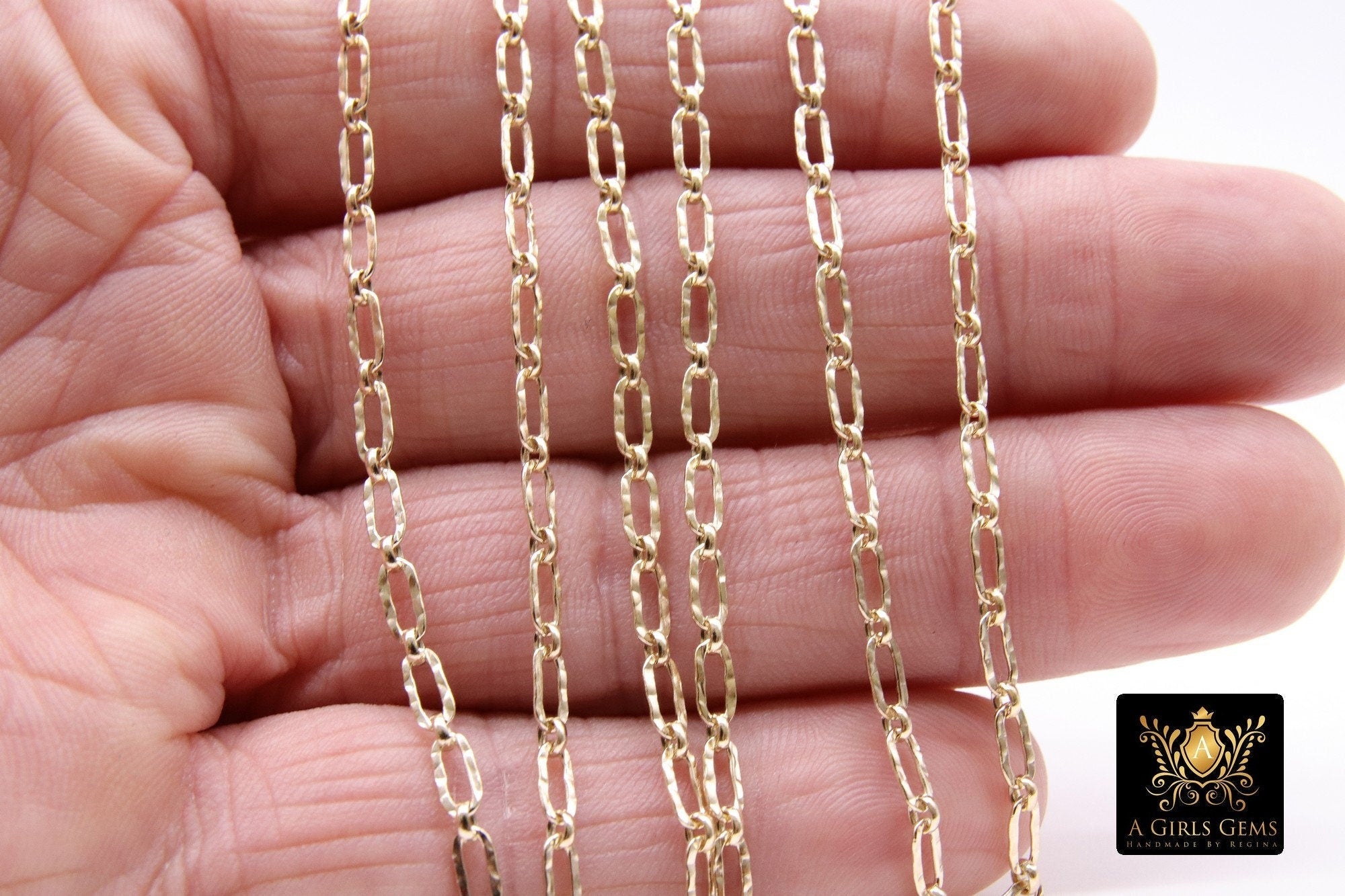 14 K Gold Filled Textured Paperclip and Rolo Chains, Elongated Oval, Rectangle Hammered Chains