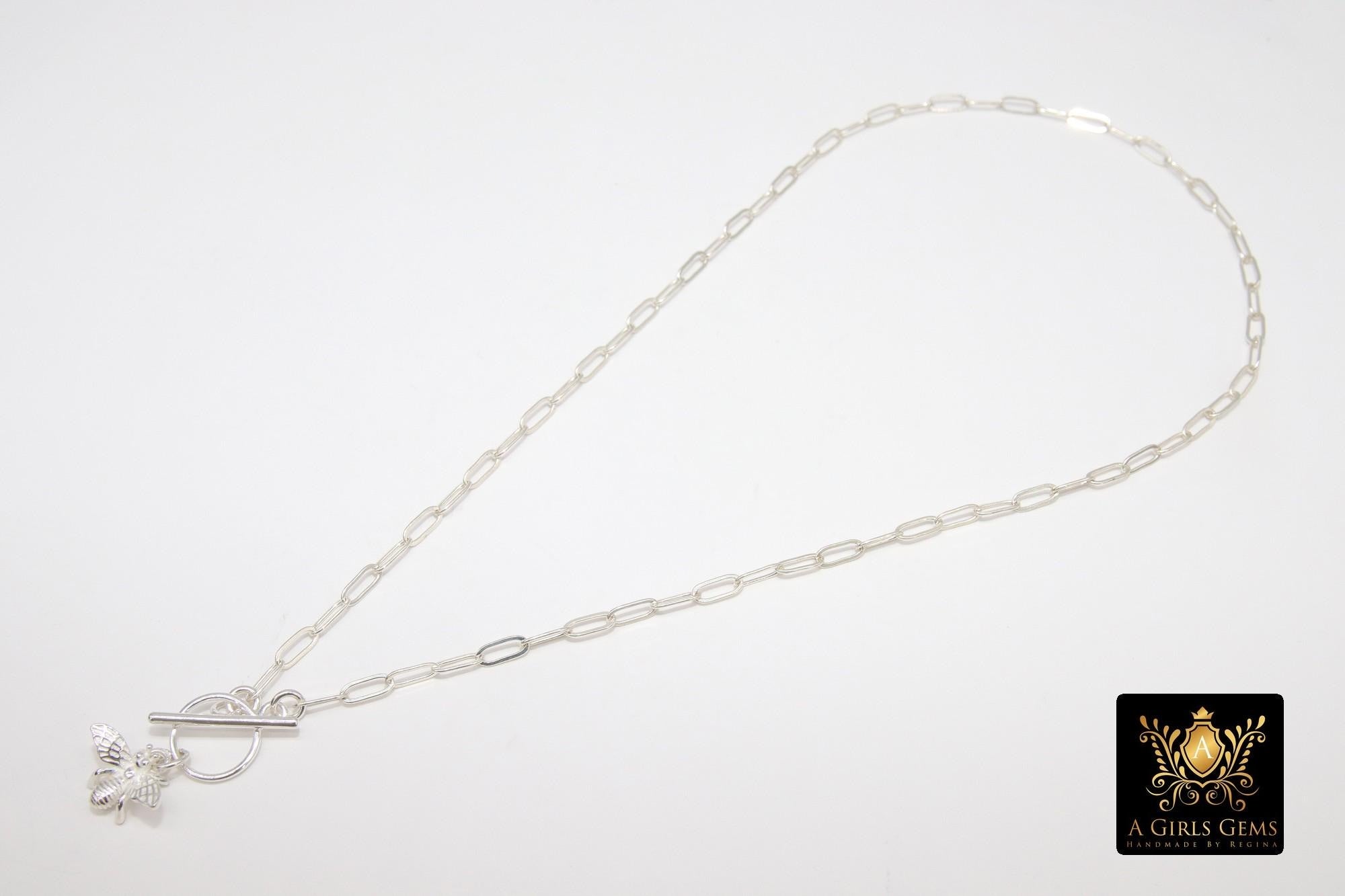 Bumble Bee Chain Necklace, 925 Sterling Silver Toggle, Queen Bee Rectangle Paperclip Drawn Chain