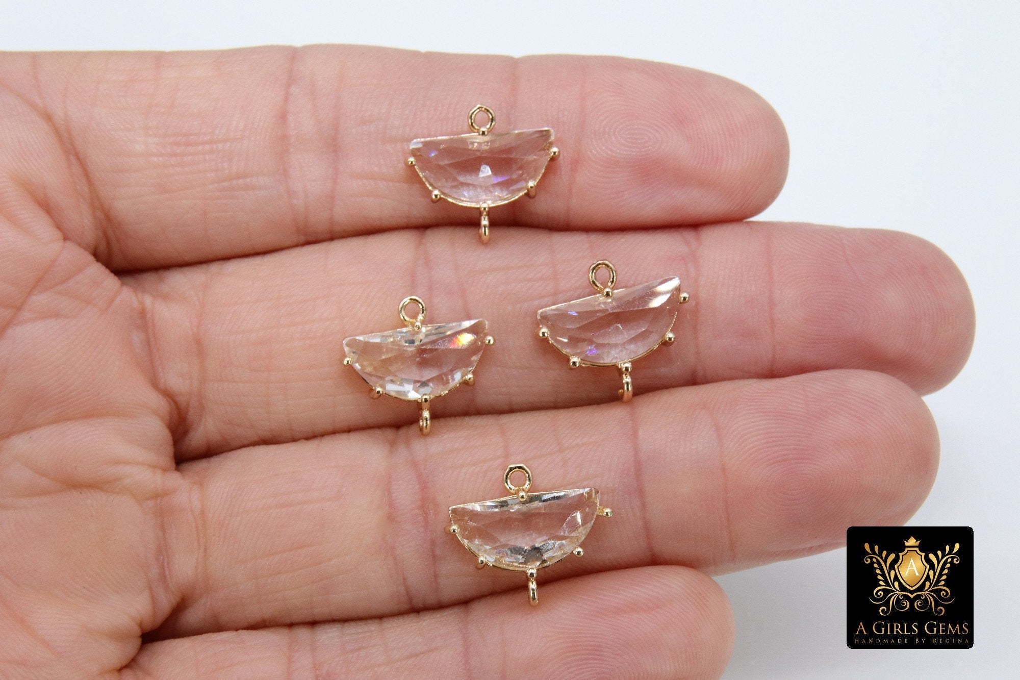 Gold Half Moon Crystal Connectors, 2 Pcs Semi Circle Links AG 647, Small or Medium Open Loop in Clear Crystal Glass