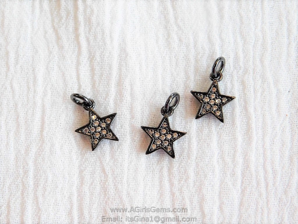 Micro Pave CZ Star Charms, Silver Starburst Dangles #60, Gold Cubic Zirconia