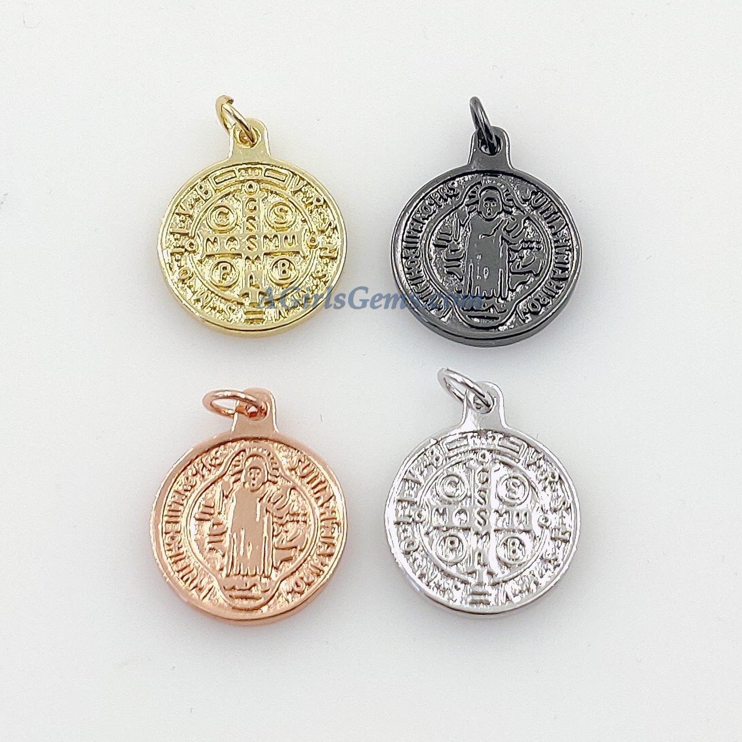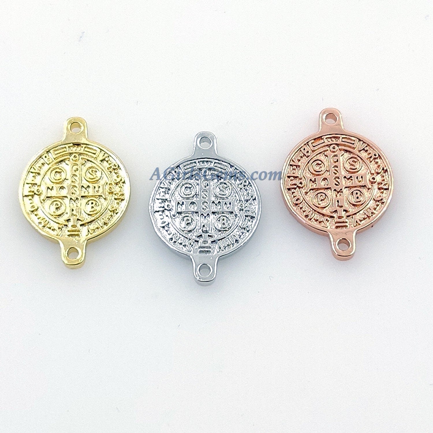 St. Benedict Medal Connectors, 3 Pcs Cross Rosary Centers, Rose/Gold/Silver/Black Plated Religious Bracelet/Necklace Cross Links; 15 x 21 mm