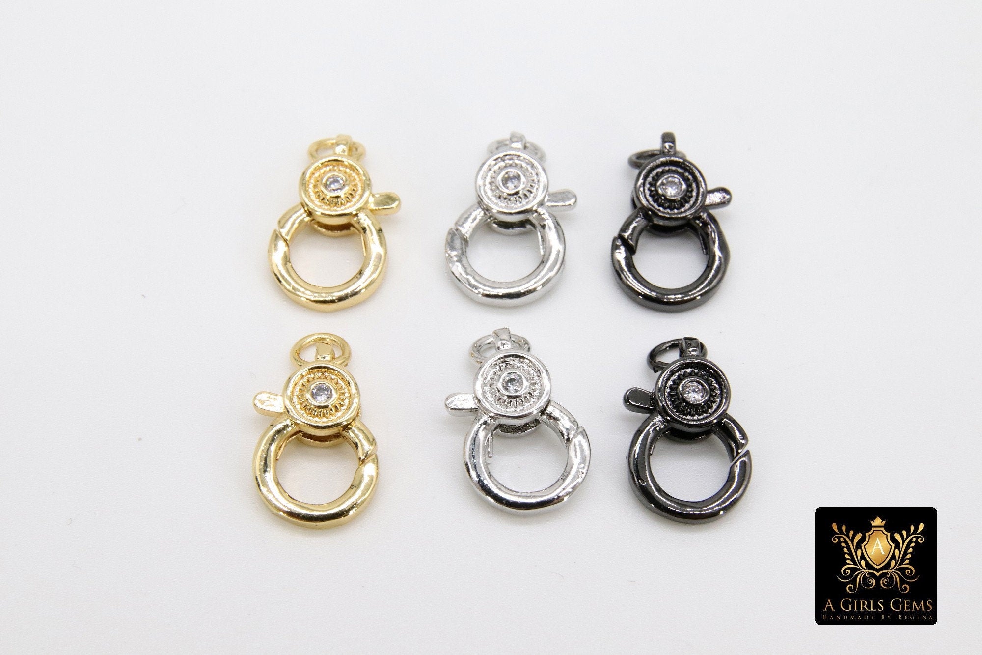 Cubic Zirconia Lobster Clasp, NEW Gold Black Silver Double Sided Claw # 2362, CZ Pave Jewelry Findings