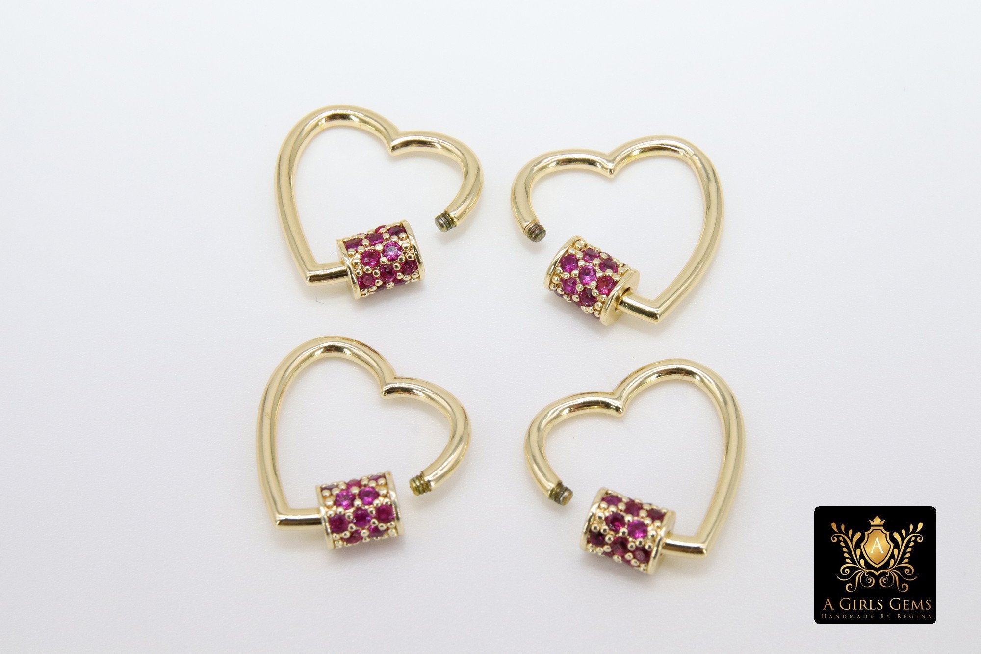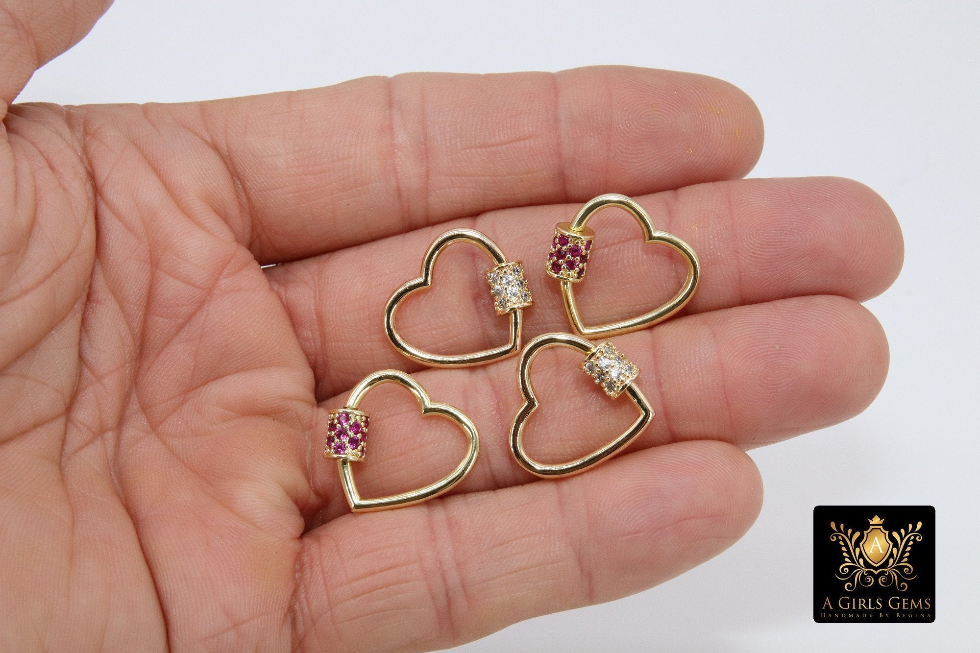 CZ Pave Carabiner Lock, Clear Gold Heart Shape Screw Clasps #2325, Silver and Black Interlocking Lobster Claw