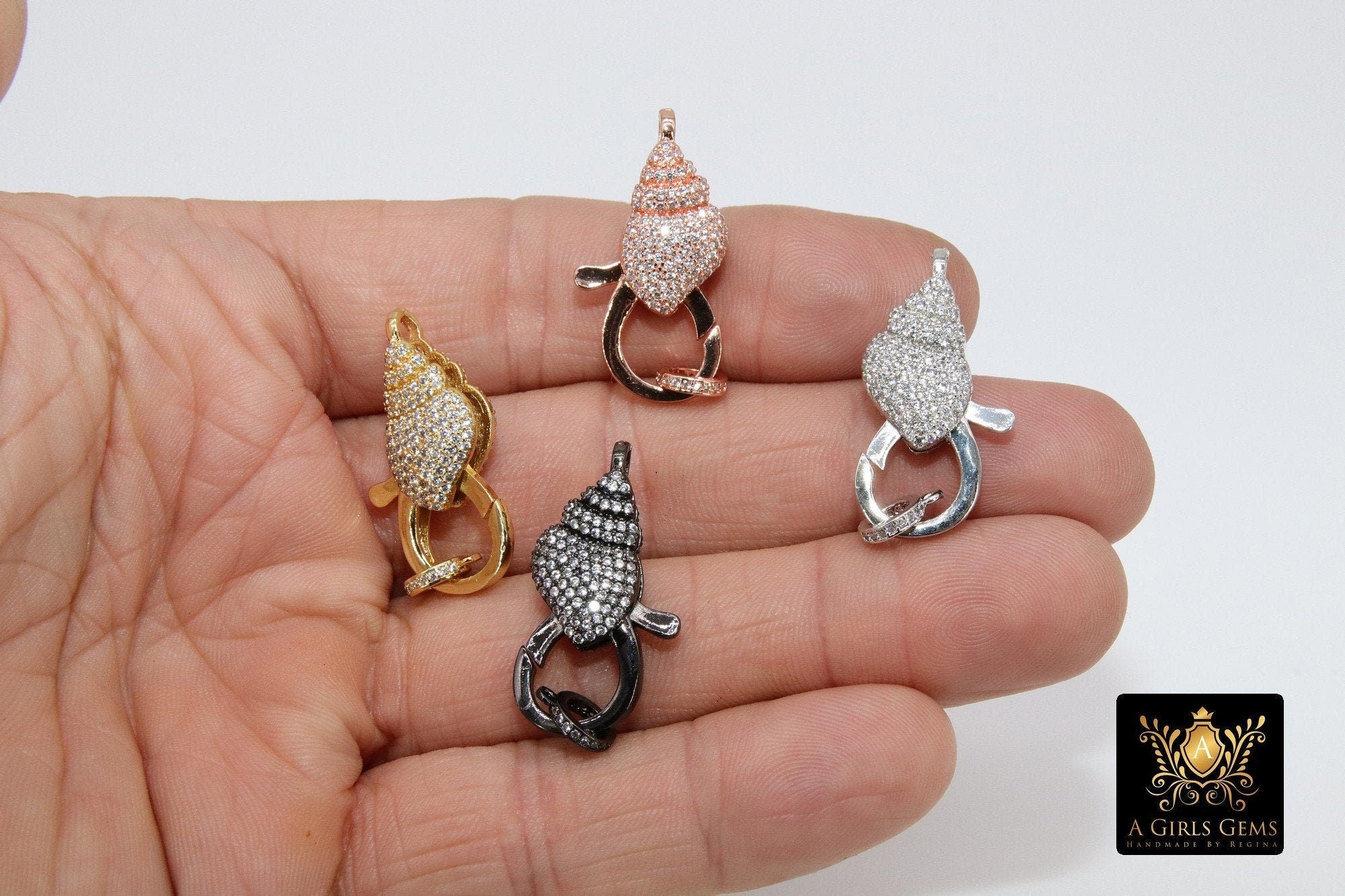 Large Lobster Clasp, CZ Pave Sea Shell Claws, Diamond Pave Conch Beach Findings
