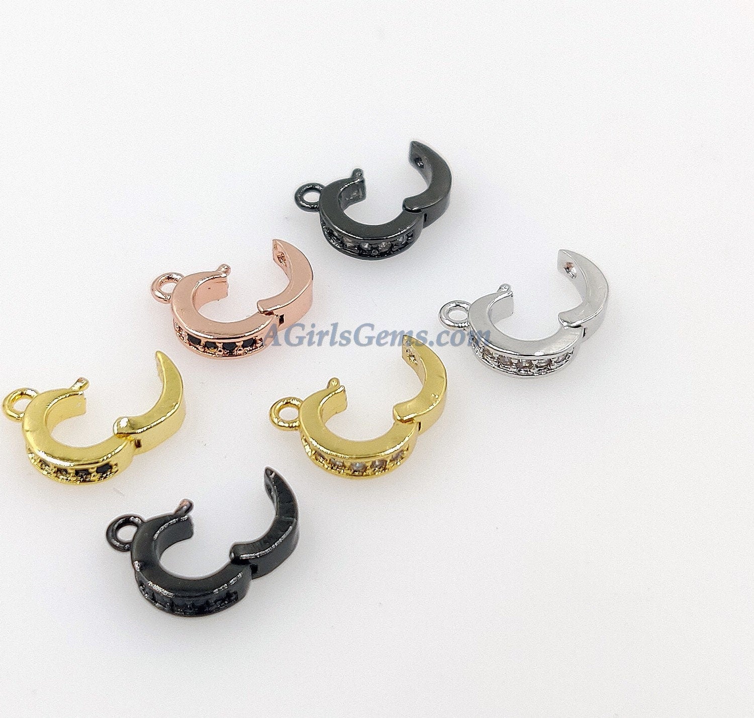 Small Clip Ring Clasps and Bails, Black CZ Micro Pave or Clear *Diamond Pave Look*, Charm Holder for Lobster Clasp/Hoops, Jewelry Findings