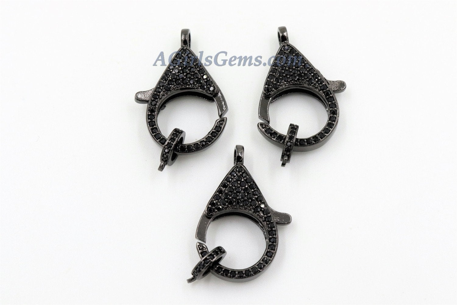 Large Lobster Clasp, 18 x 26 mm Diamond Pave Look, CZ Micro Pave Gunmetal Black Clasps