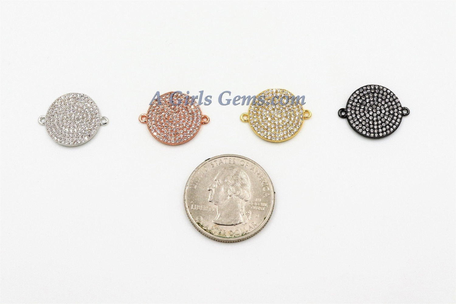 CZ Micro Pave Clear Round Disc Connector, CZ Gold Coin Connectors Beads, *ALL CoLoRs* Rose, Gold, Silver, Black , 16 x 20 mm Disc Charm AGG270