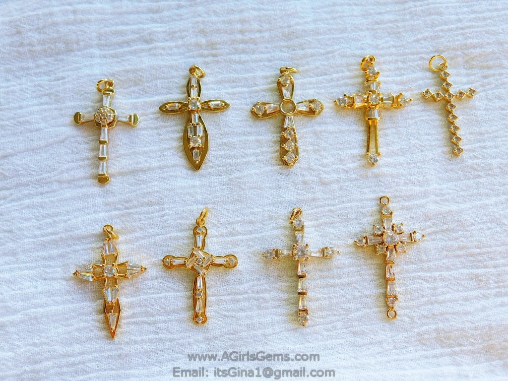 Medium CZ Cross Gold Cubic Zirconia Cross Gold Plated CZ Cross for Chain Loop for Bracelet Necklace Rosary Bracelet AG 198