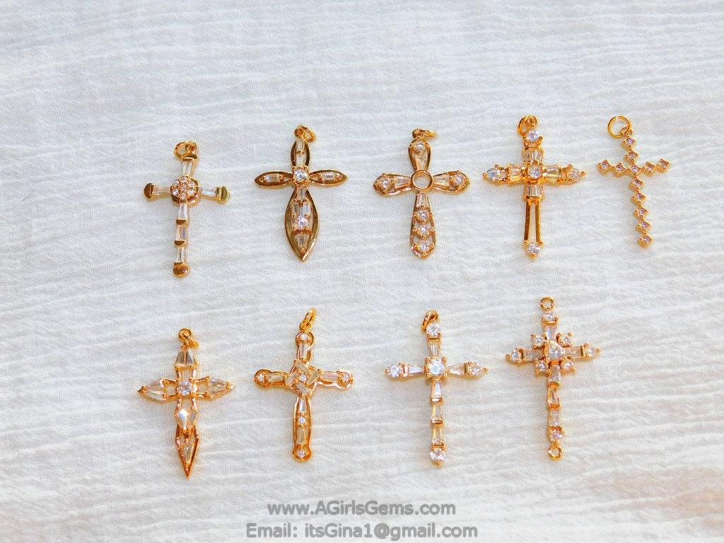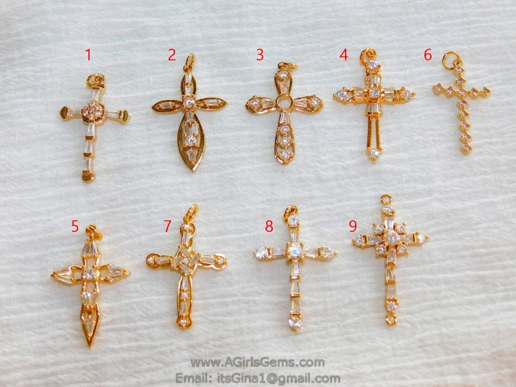 Medium Dainty Cross CZ Gold Cubic Zirconia Cross Gold Plated CZ Cross for Chain Loop for Bracelet Necklace Rosary Bracelet AGGSM198