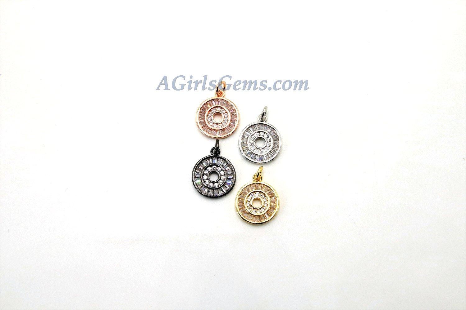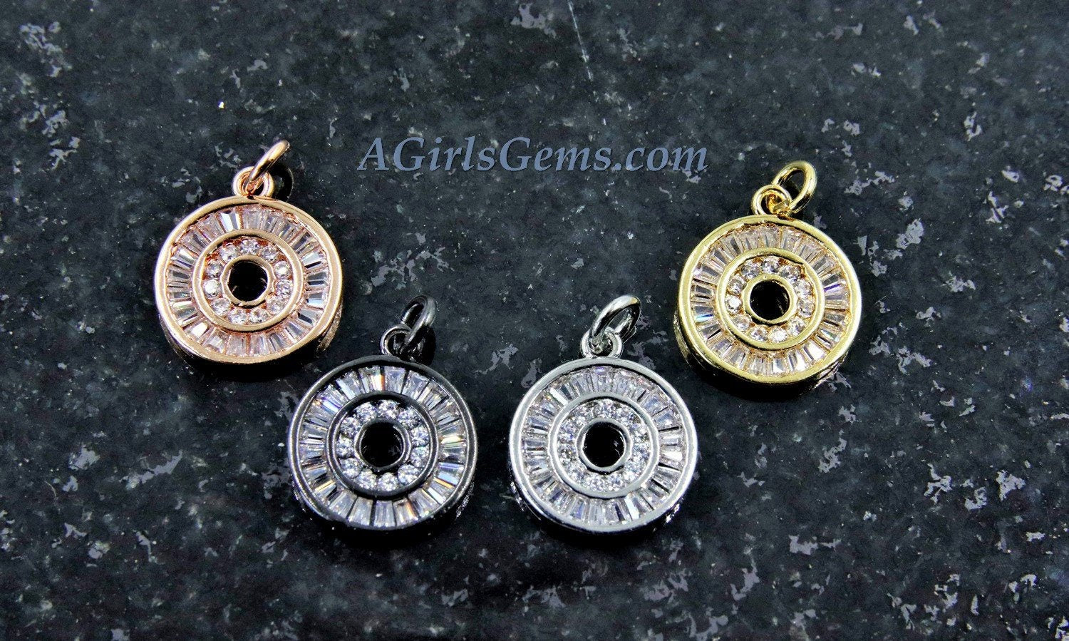 Round Disc Pendant, CZ Pave Small Coin Charms, Baguette Circle
