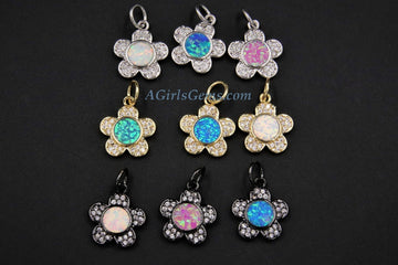 Opal Flower Charms AG 328, CZ Pave Tiny Blue Daisy Flower charm, 12 x 18 mm White Pink Flower Girl Findings
