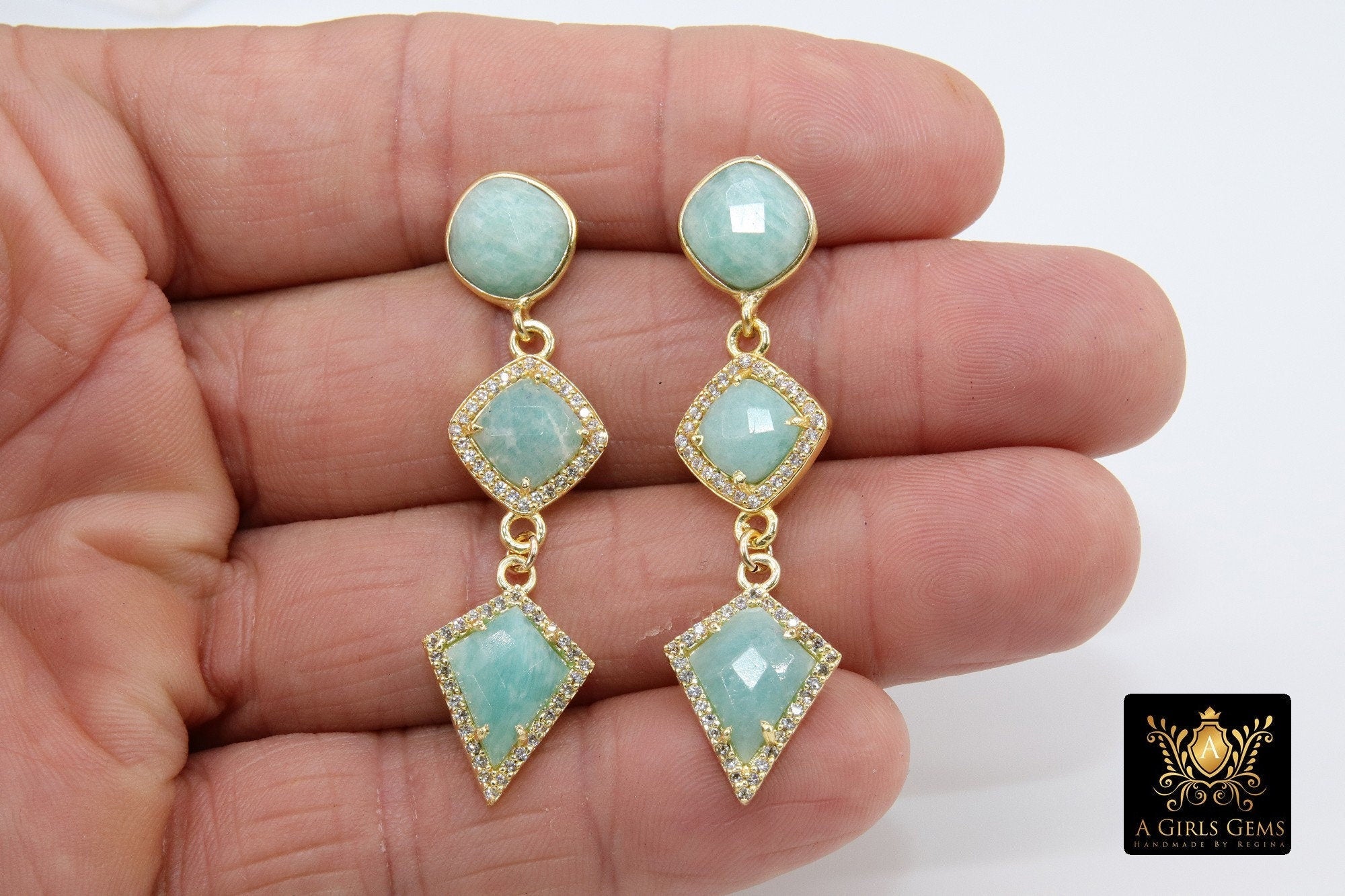 Measurements Approximately: Length is 1.8 inches long; drop is 1.25 Inches or 3 Stones Drop is 2.4 Inch Long