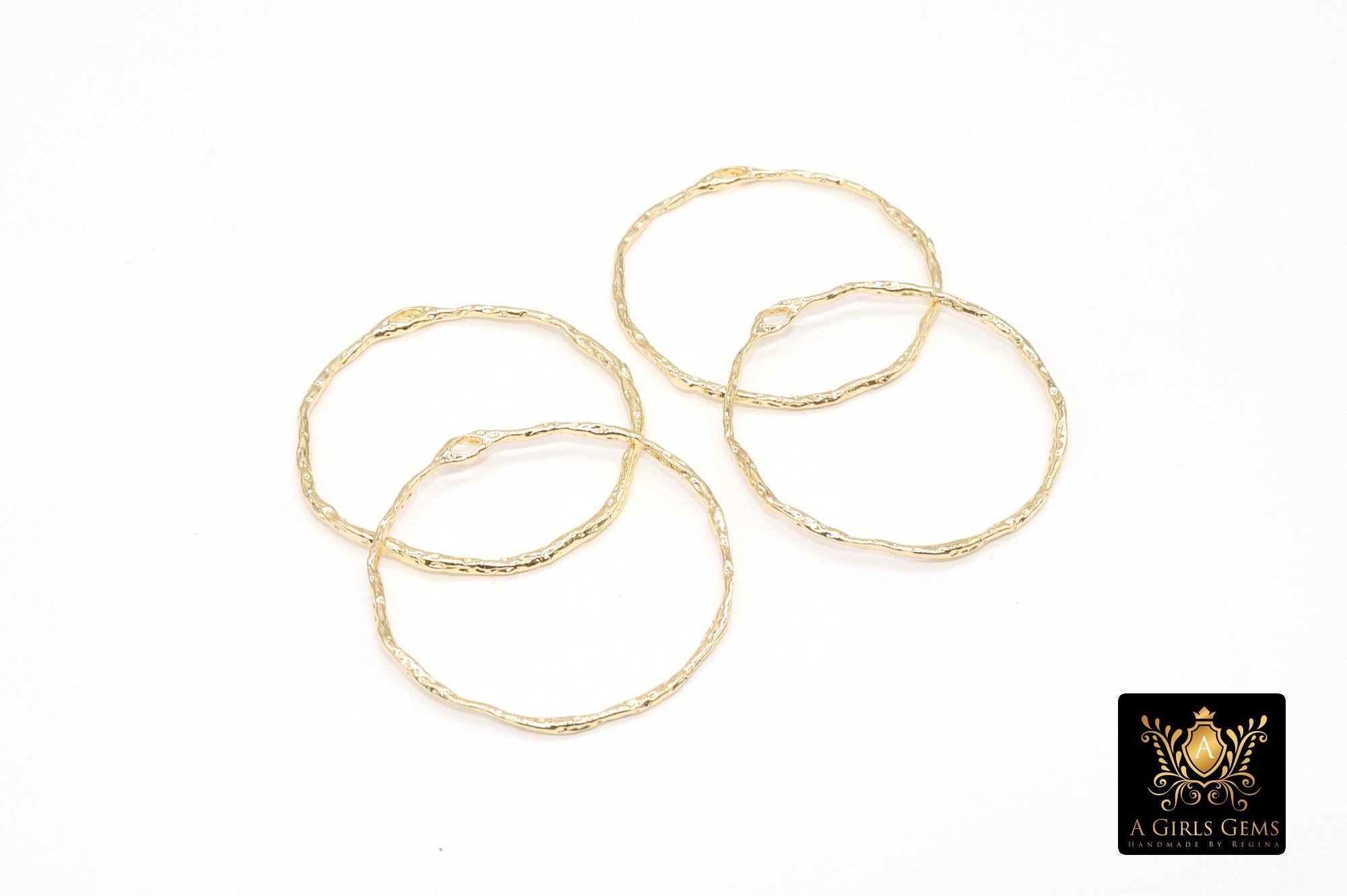 Textured Dainty Round Gold Wire Hoop Ear Ring Charms, - 2 pc/1 Pair