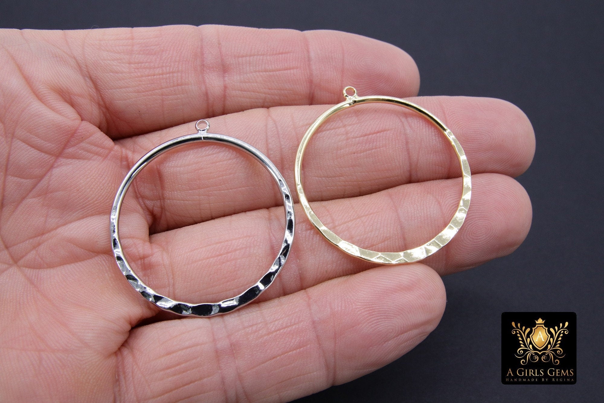 Textured Silver Round Hoop Ear Rings, 35 mm Glittery Gold Charms #2094, Hammered Gold Wire Hoops