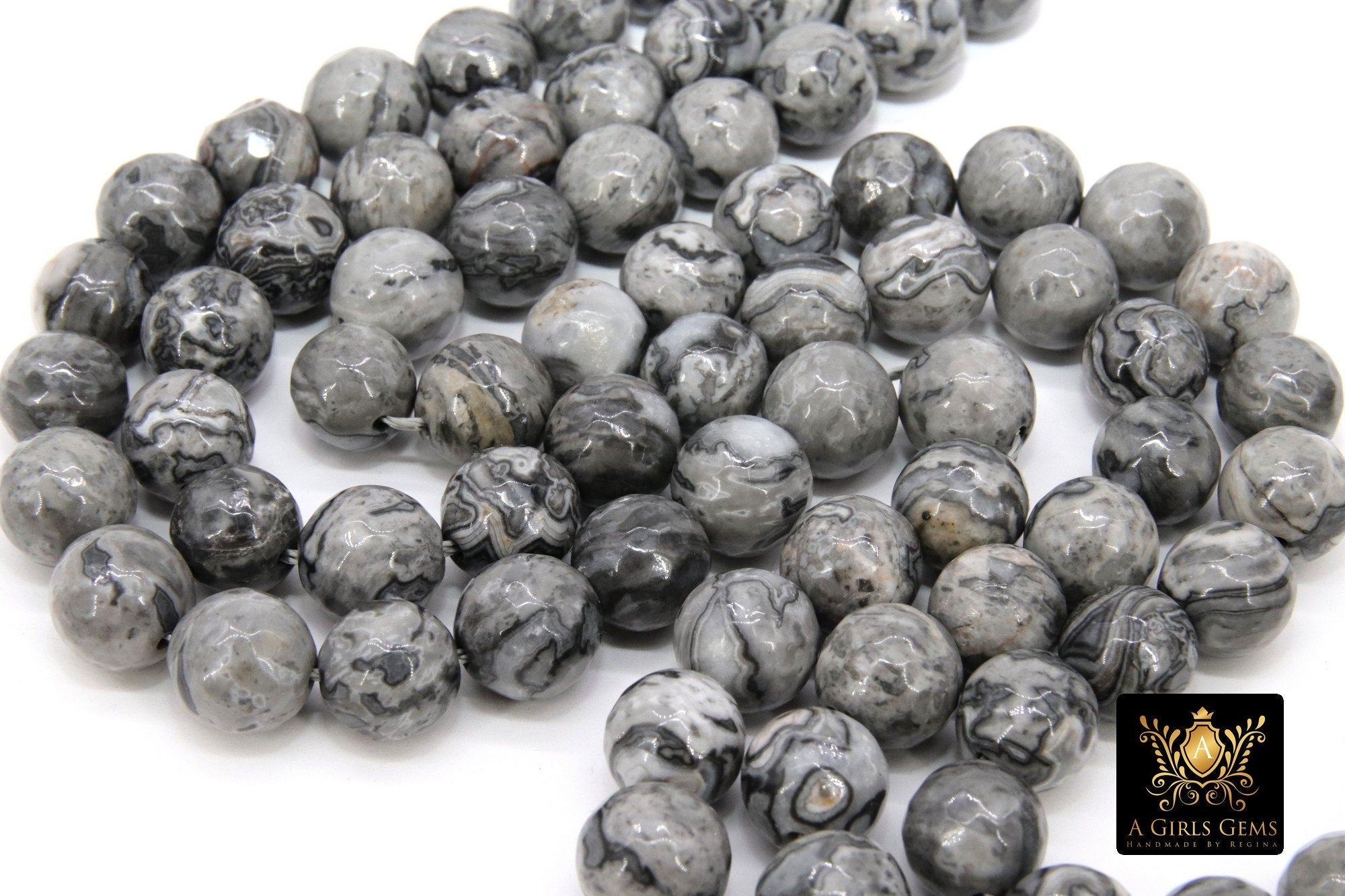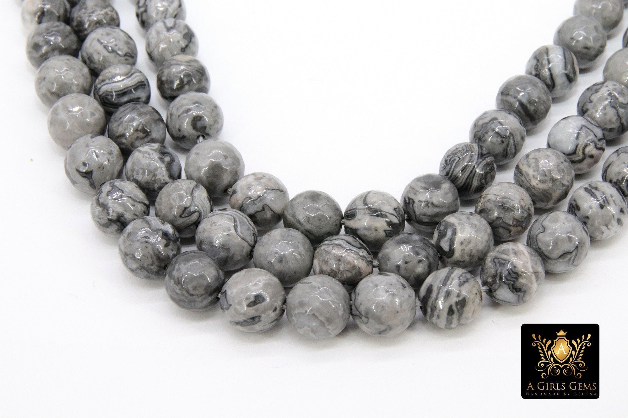 Faceted Picasso Map Stone Beads, Round Black Gray Beads BS# 188, High Quality 10 mm 15.8 inch Strands