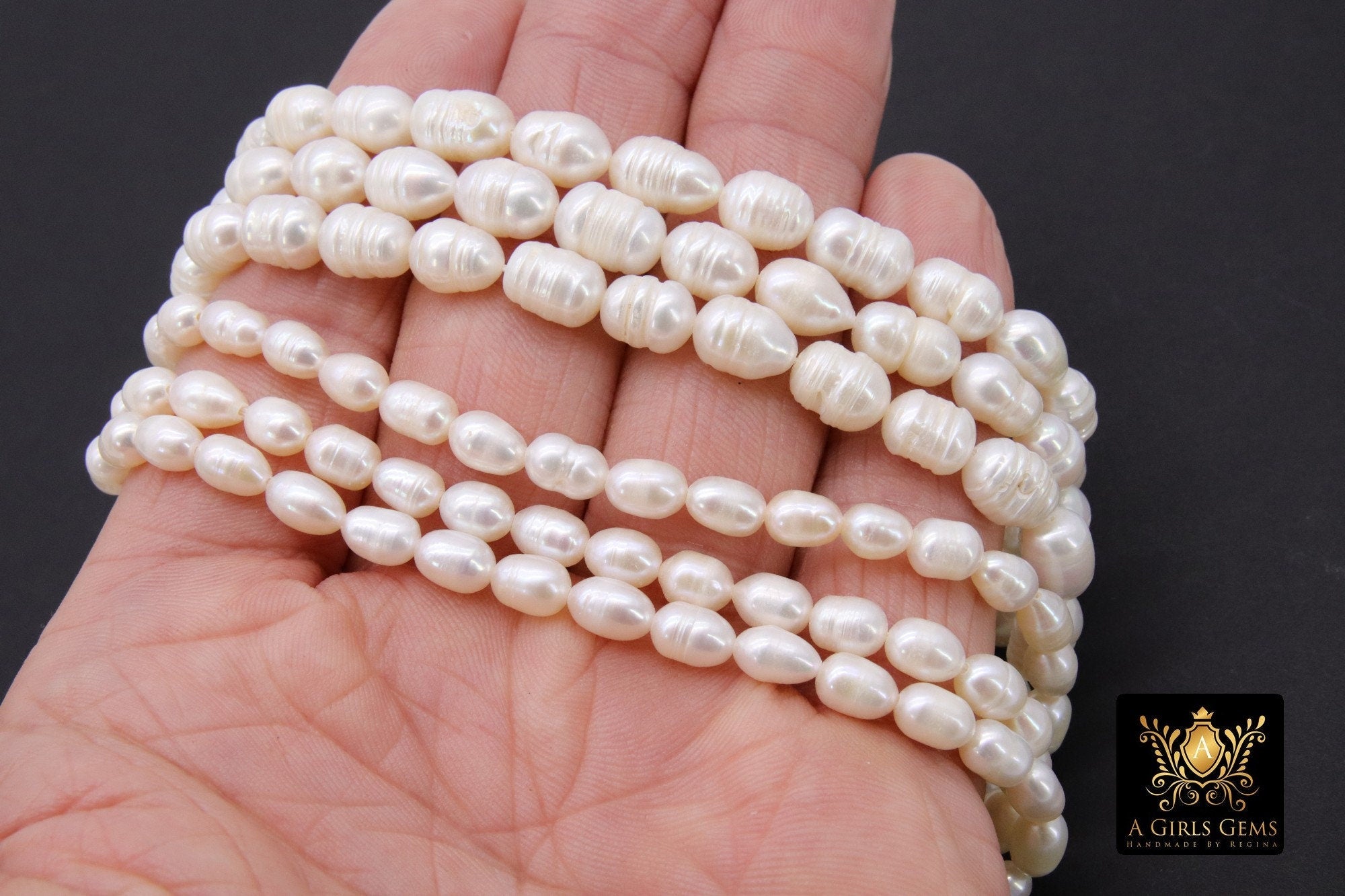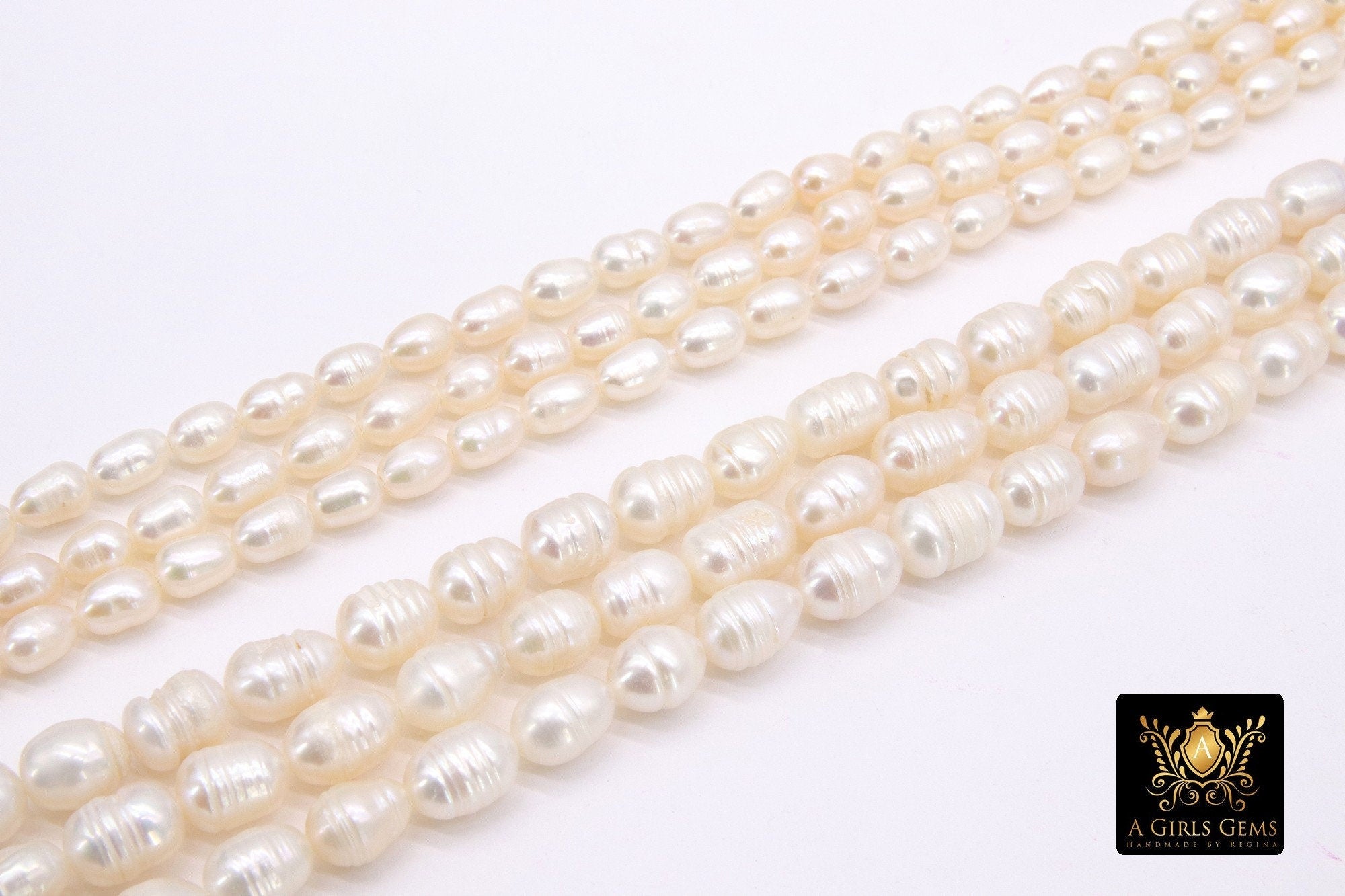 Genuine Pearl Bead Strands, 6 mm 12 mm White Baroque Pearl Beads BS #295, Oval Freshwater Rice Pearl