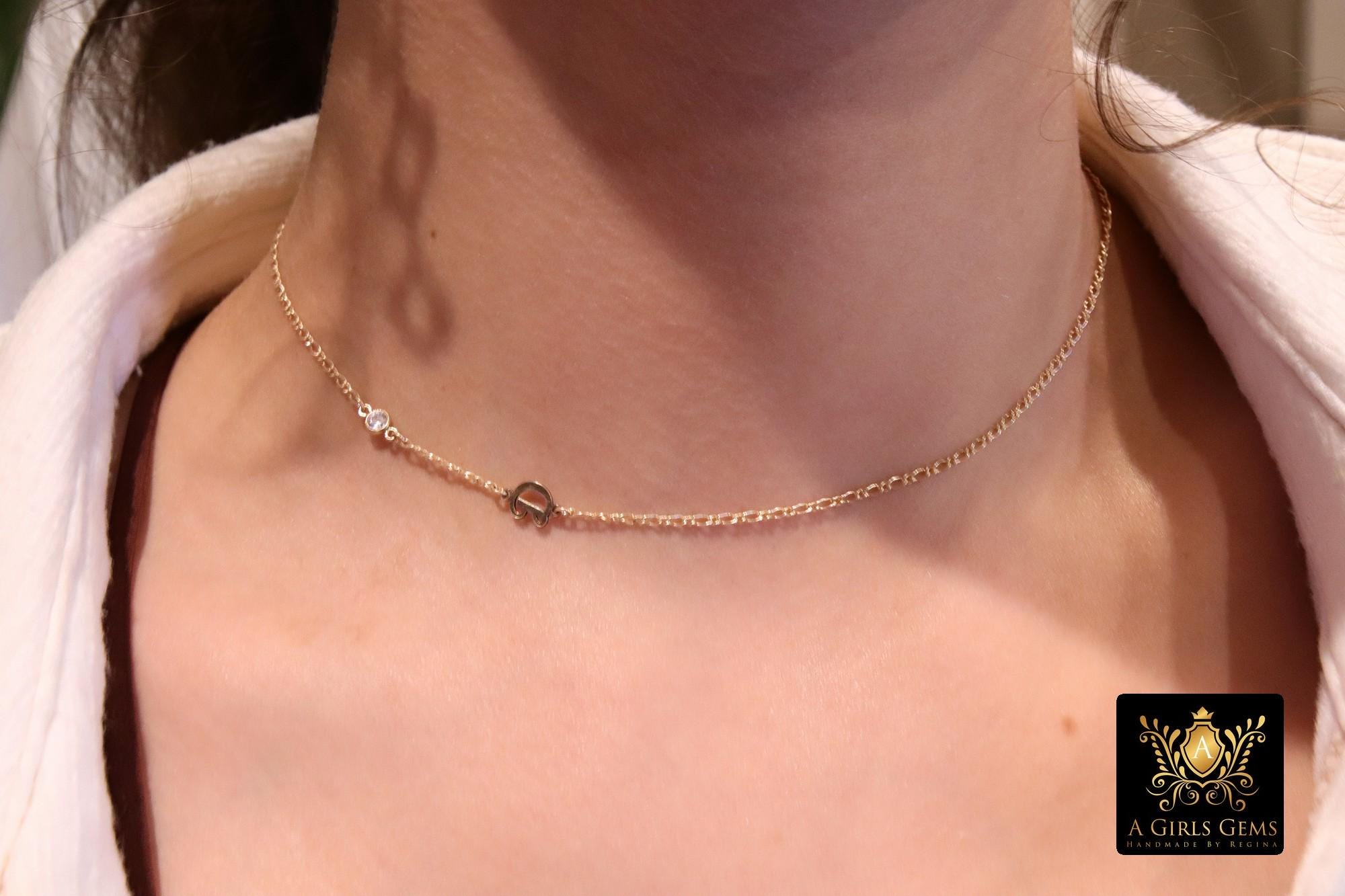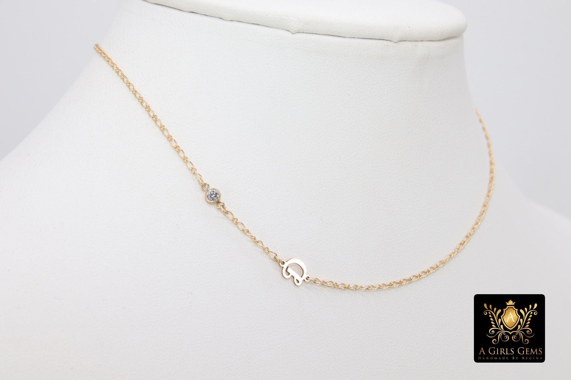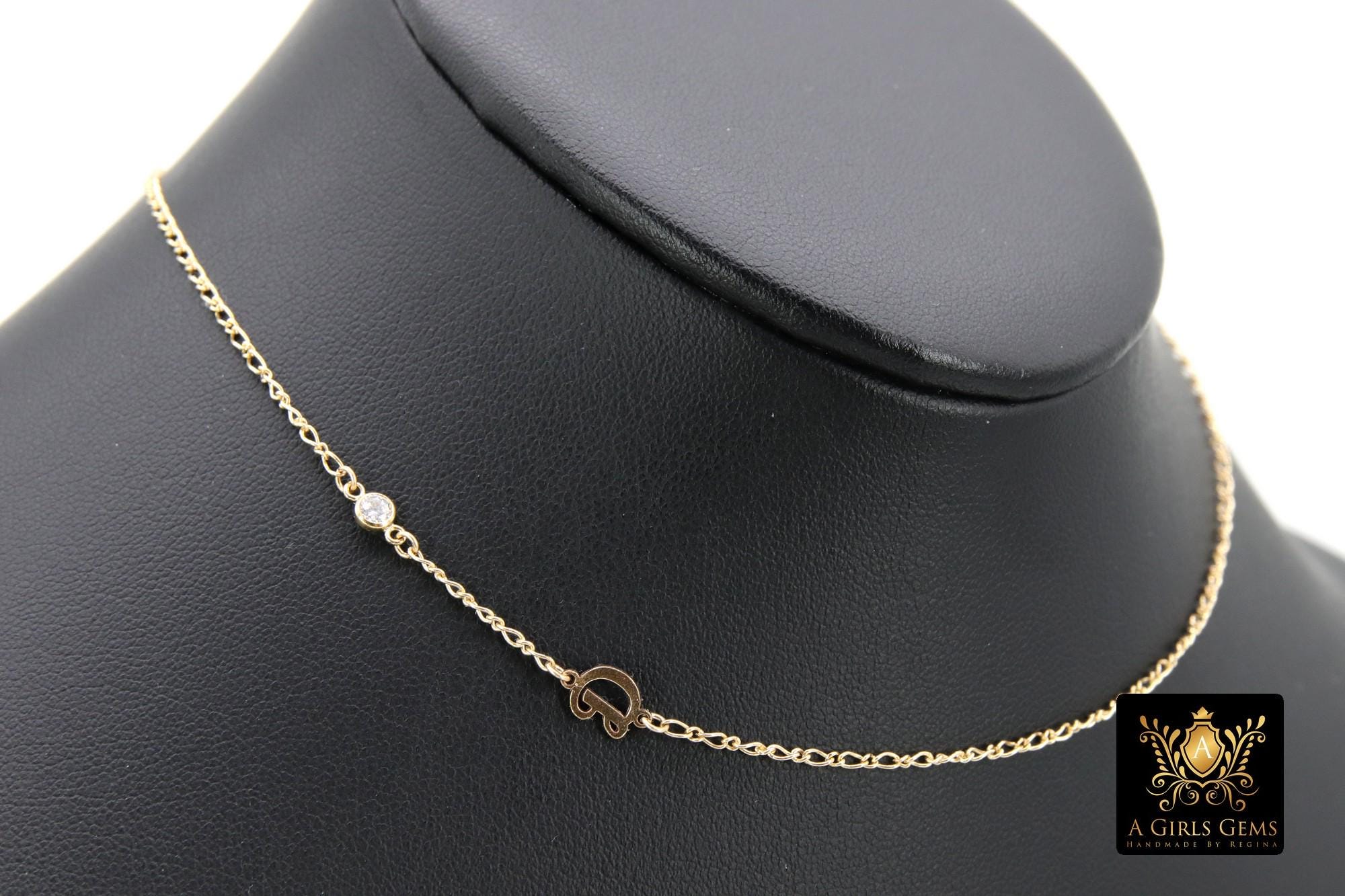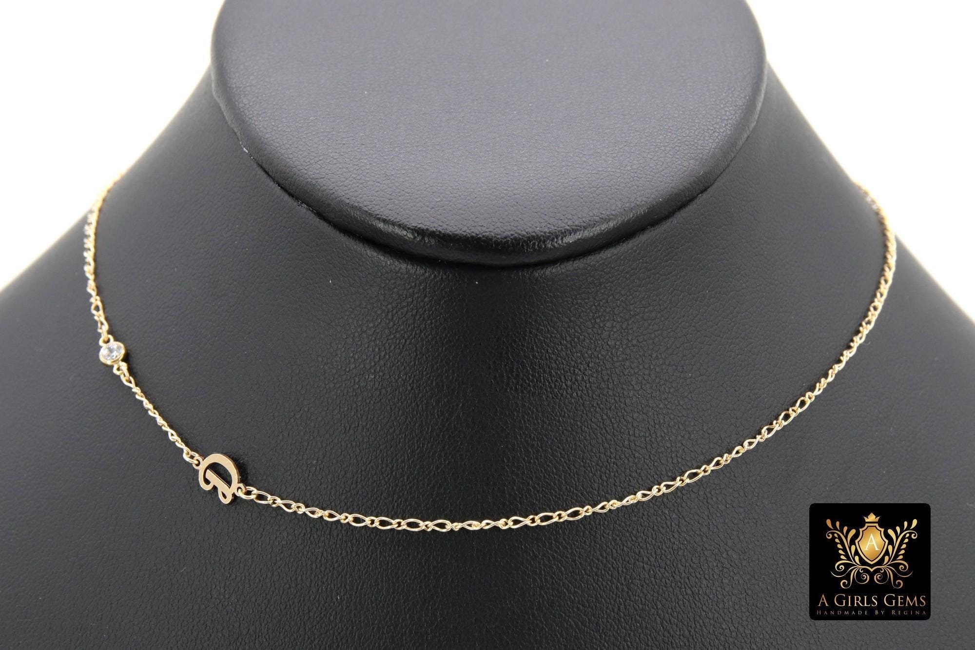 14 K Gold Filled Figaro Initial CZ Chain Necklace, Stamped 14/20, Everyday Necklace. Necklaces are made to be off center. If you want it to be different, please message us with your custom order.