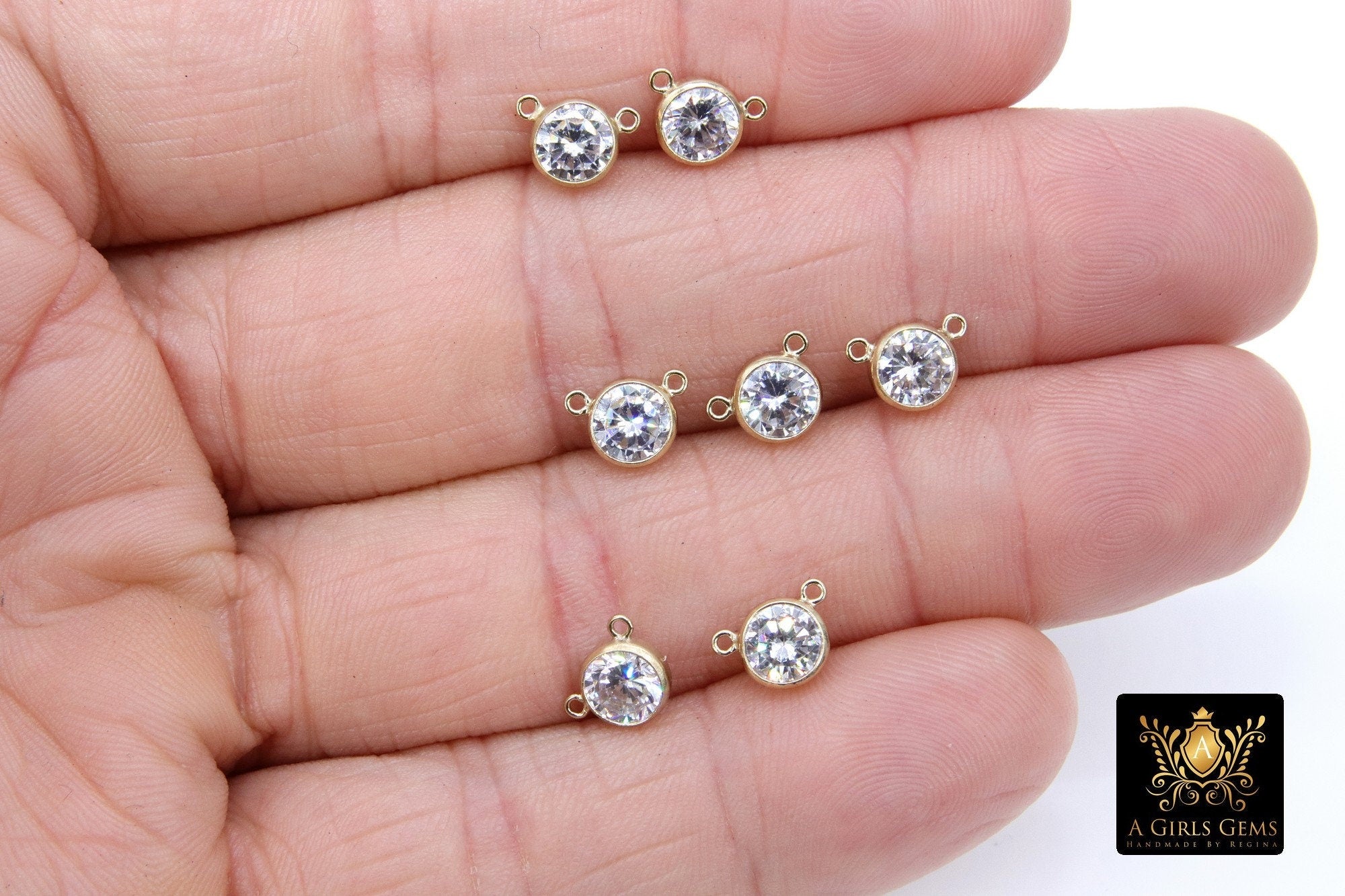 14 K Gold Filled Solitaire Connectors, 6 mm Cubic Zirconia Necklace Charms # 2807, Genuine 14 20 Gold CZ Links