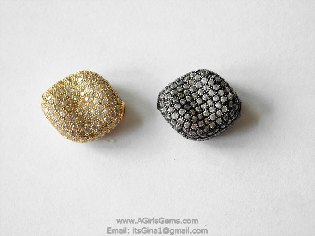 CZ Micro Pave Oval Diamond Beads, 17 x 20 mm Diamond Wavy Beads for Bracelet Charms - Football Shape Beads, Bracelet and Necklace Connectors