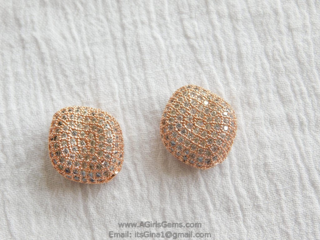 CZ Micro Pave Oval Bead, Rose Gold with Clear Cubic Zirconia, Diamond Shaped Focal Bead Spacers for Bracelets, Necklace, Tassels, DIY