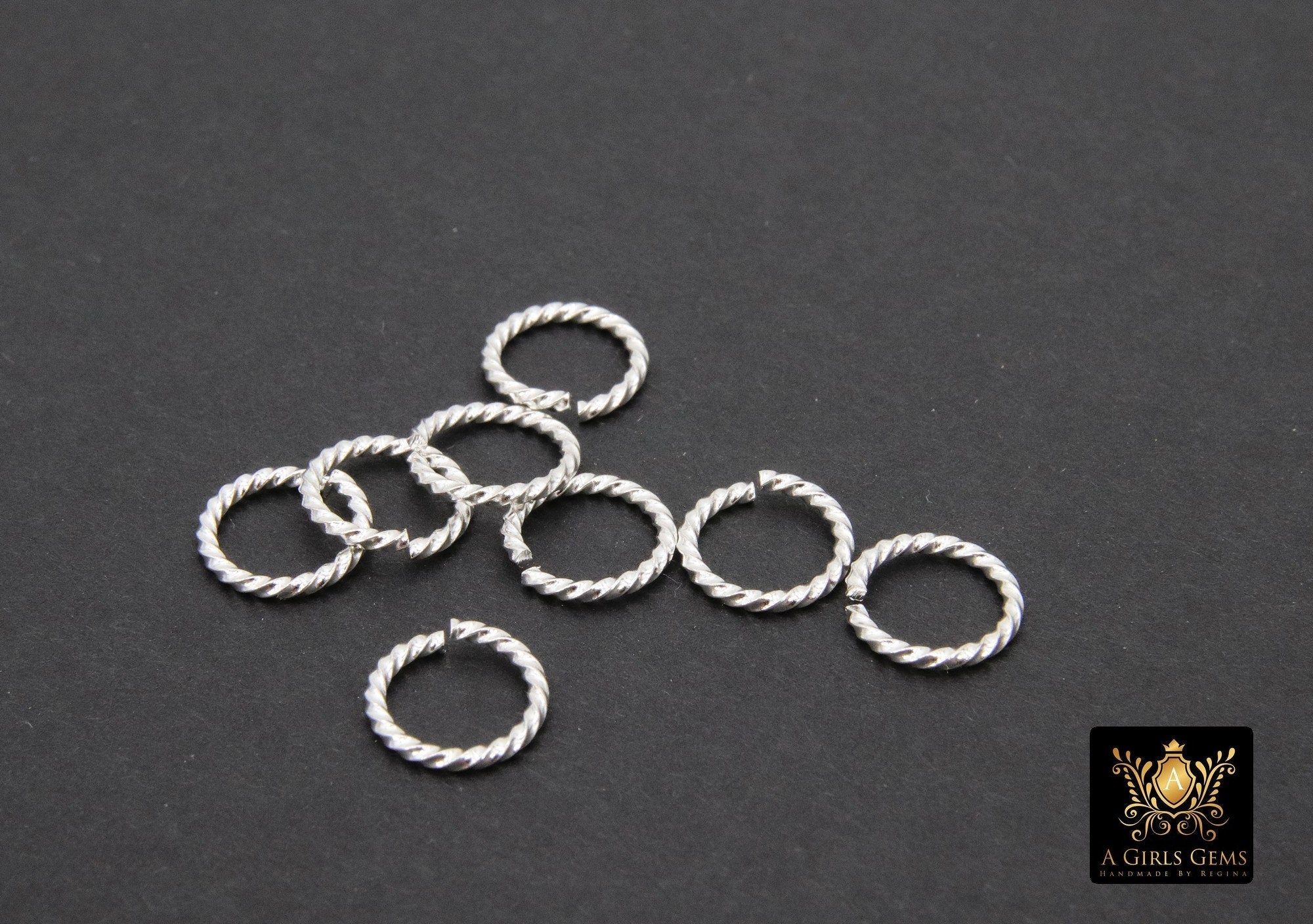 Stainless Steel Bright Silver Jump Rings, 10 mm Open Twisted Rings #835, Textured 16 Gauge