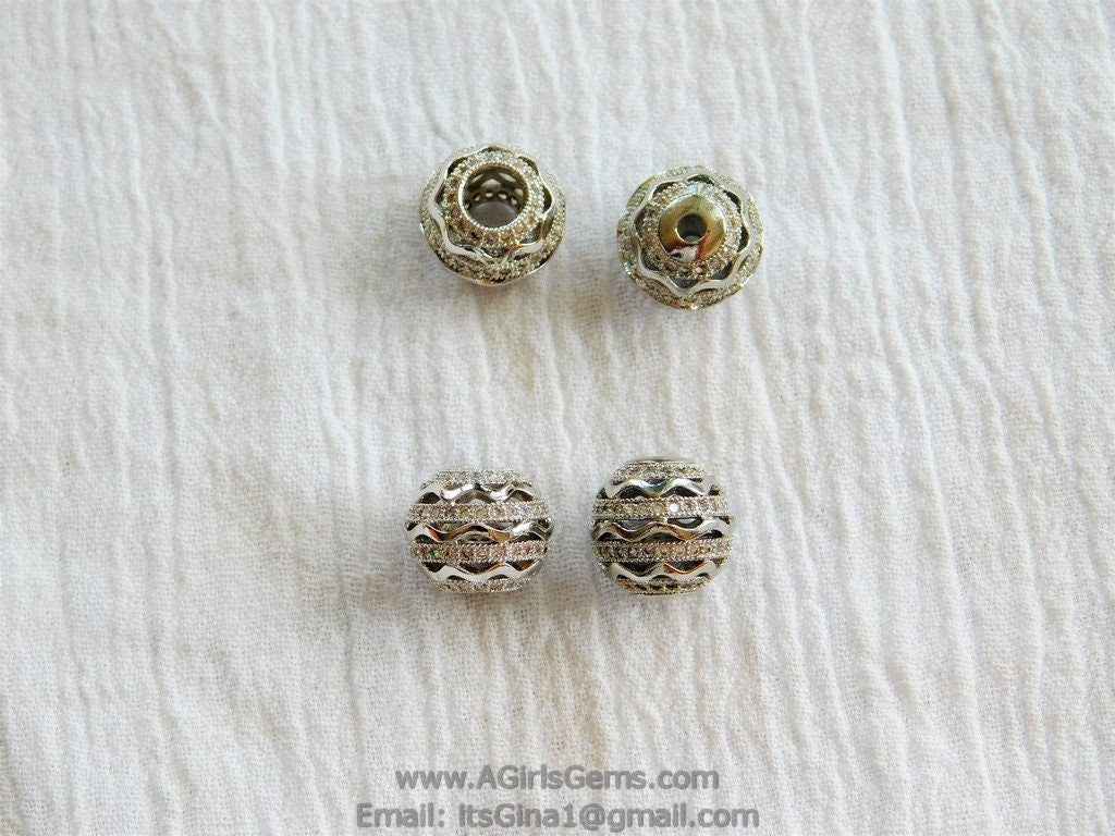 CZ Paved Silver Beads, Large or Small Hole 11 mm Gold Filigree Round Beads #240, Rose Cubic Zirconia Paved CZ Focal Beads