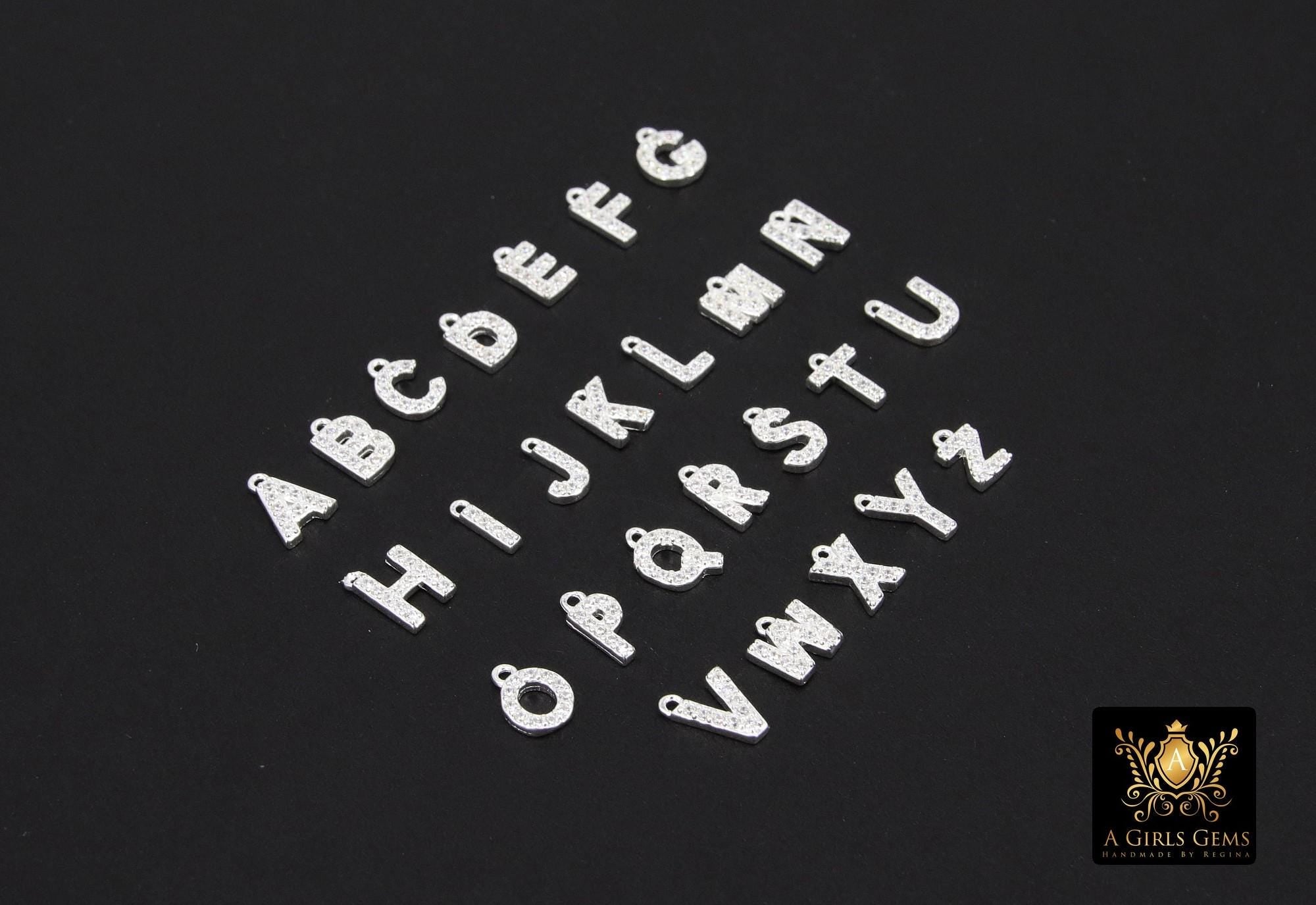 14 K Gold Filled CZ Alphabet Charms, 7 mm 925 Sterling Silver Initial With Jump Ring # 3375, Letters
