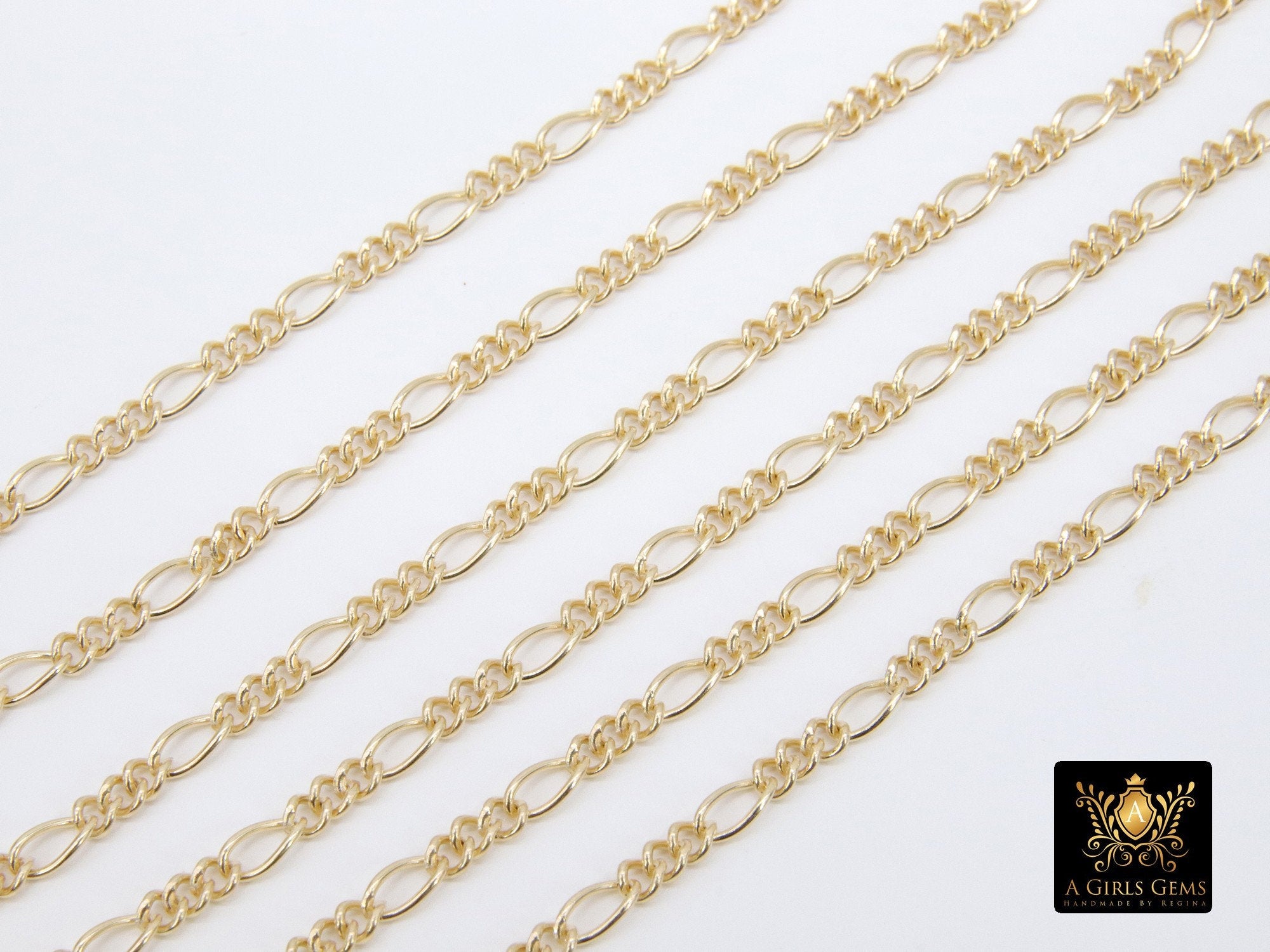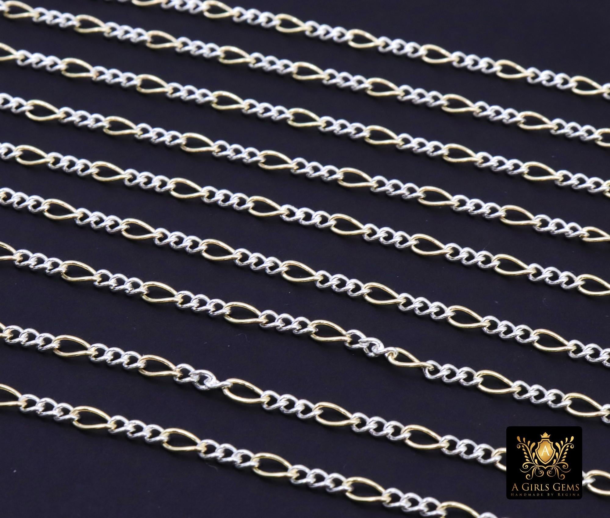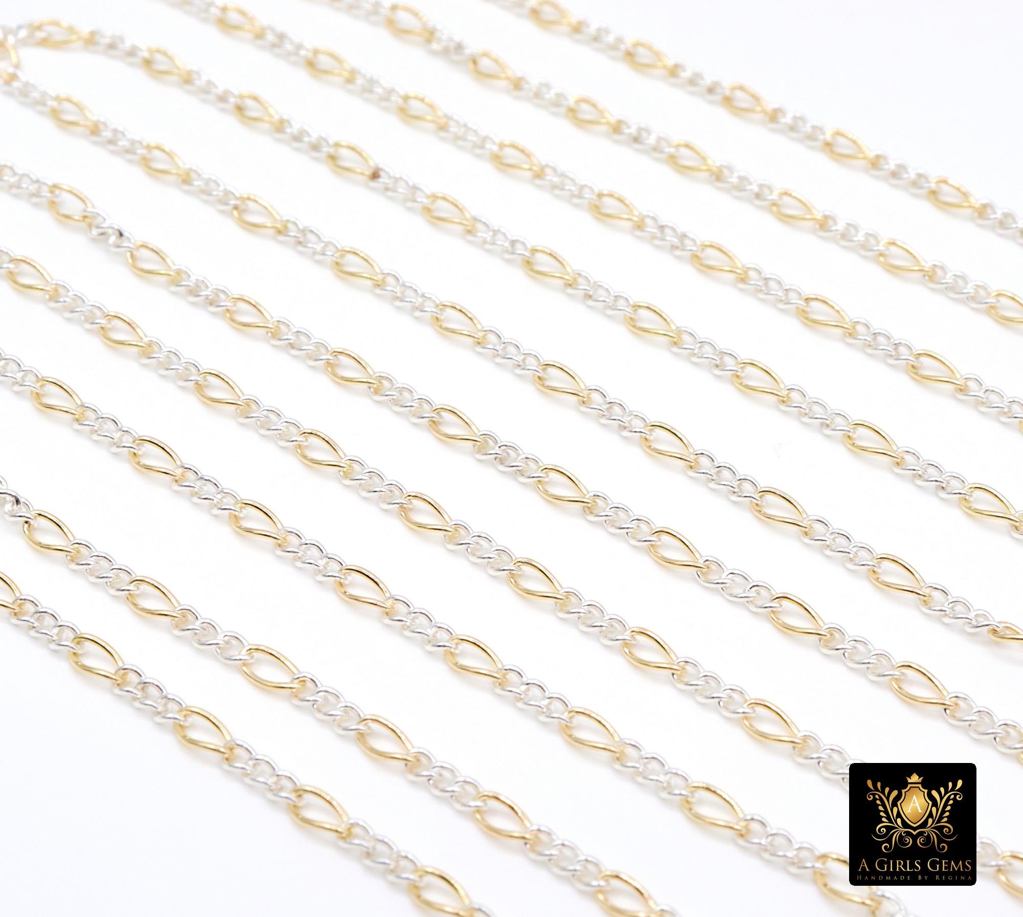 14 K Gold Filled Mixed Metal Figaro Chain, 6.2 mm 925 Sterling Silver Unfinished Paperclip By The Foot CH# 845, 2.8 Long Short Rolo Links