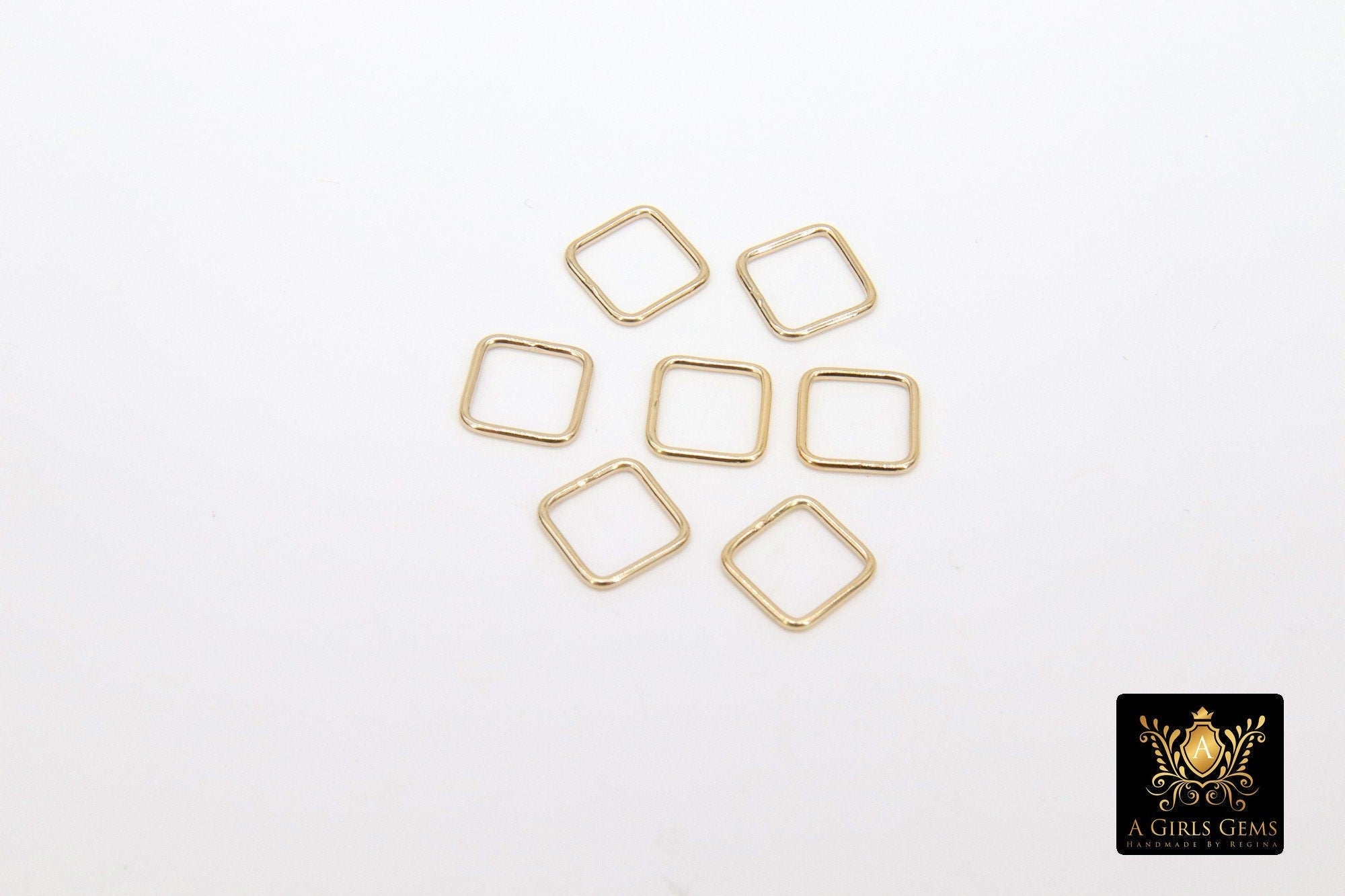 14 K Gold Filled Square Shape Charms, 8 mm 14 20 Diamond Shaped Soldered Links #2198, Closed Rings