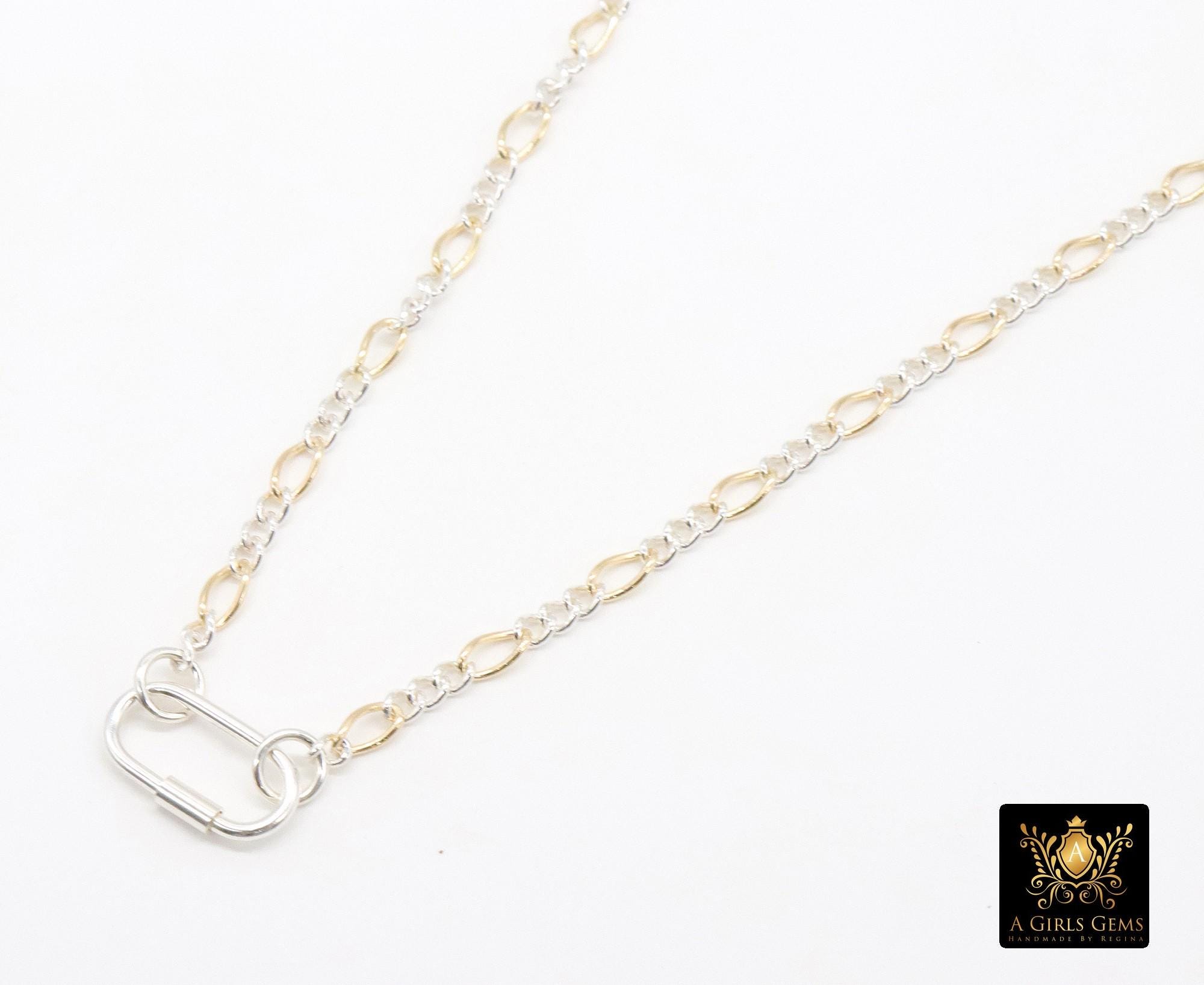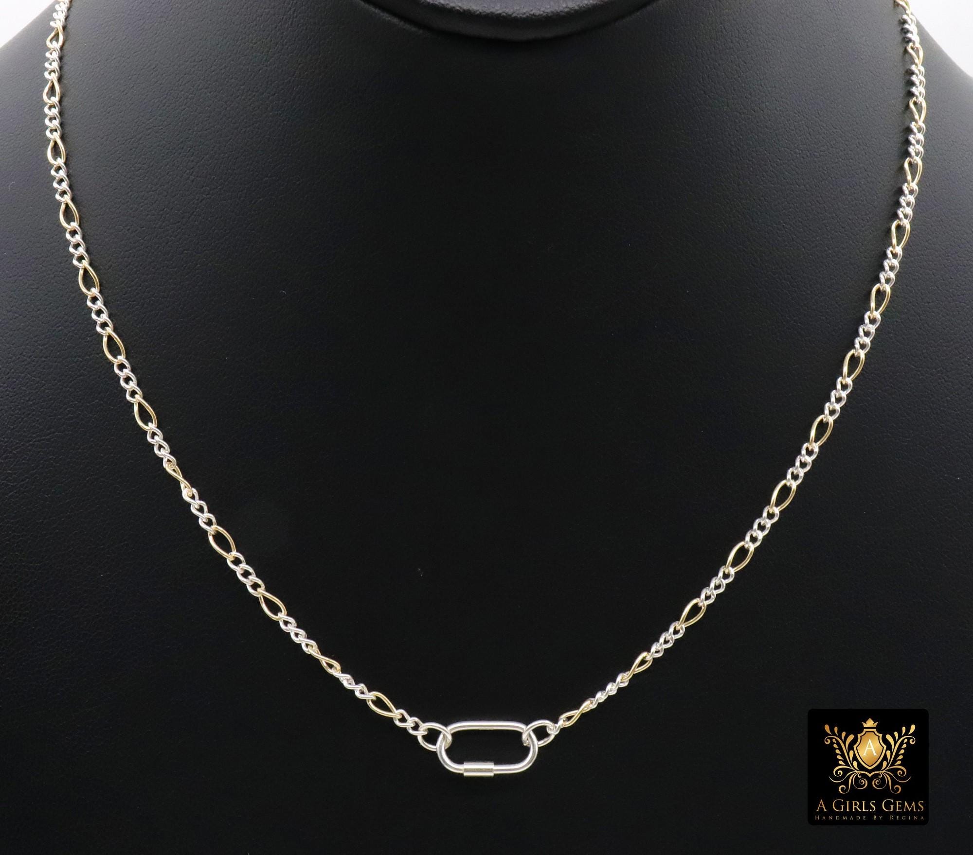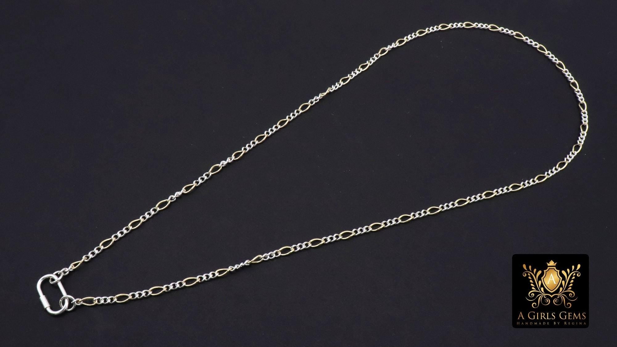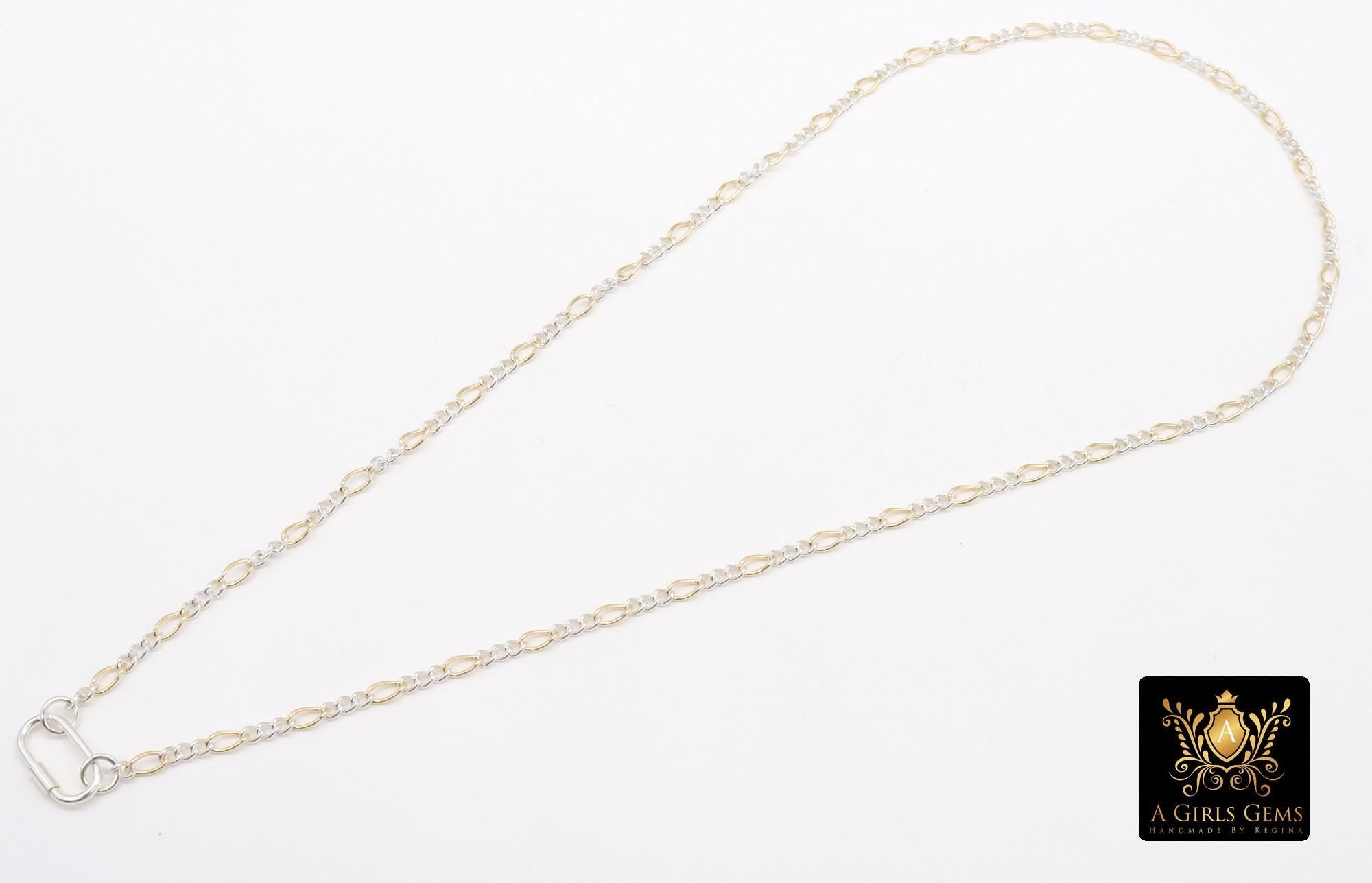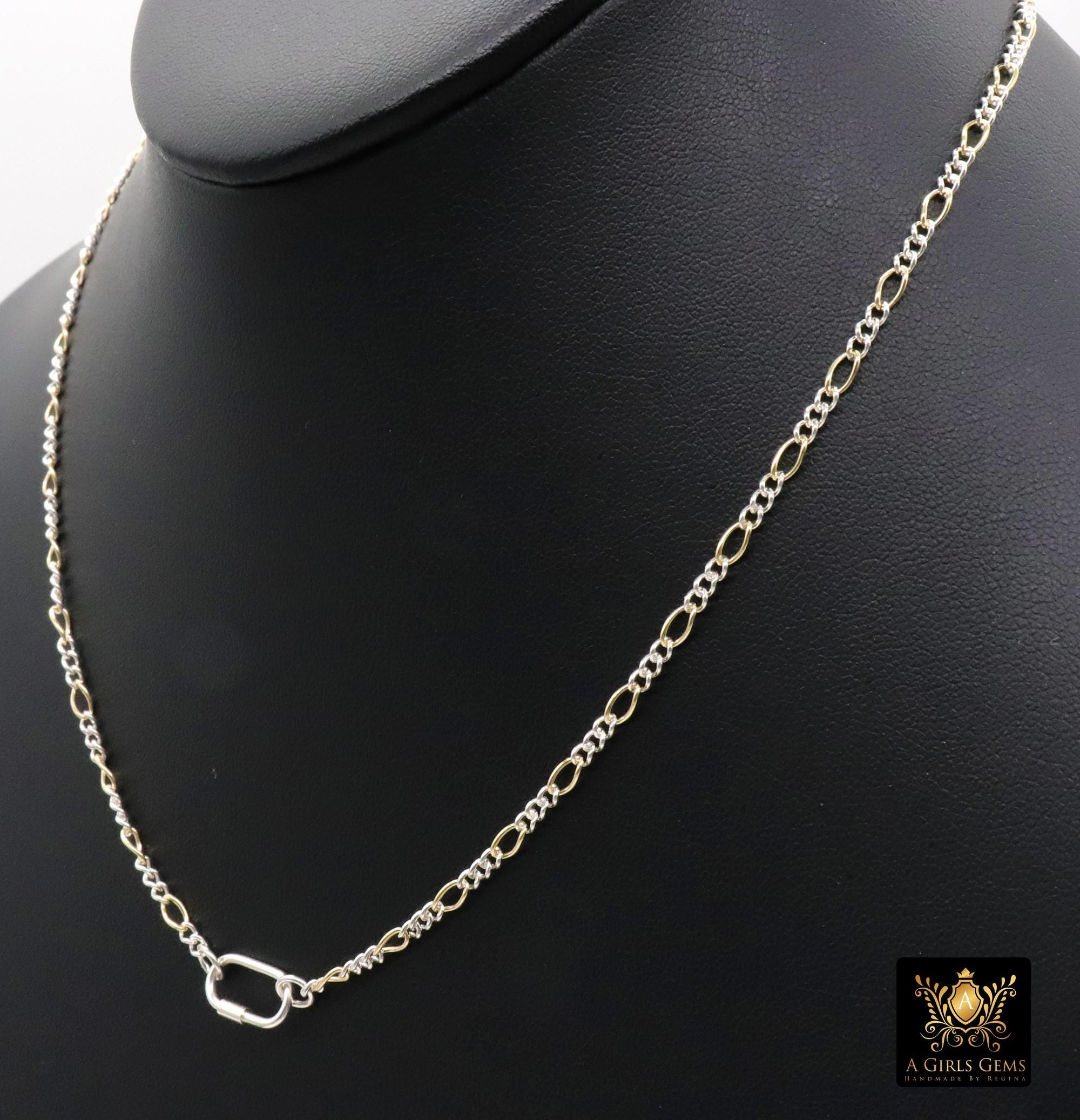 Mixed Metal 14 K Gold Filled Figaro Chain Necklace, 925 Sterling Silver Long Short Rolo Figaro Links, Gifts For Her