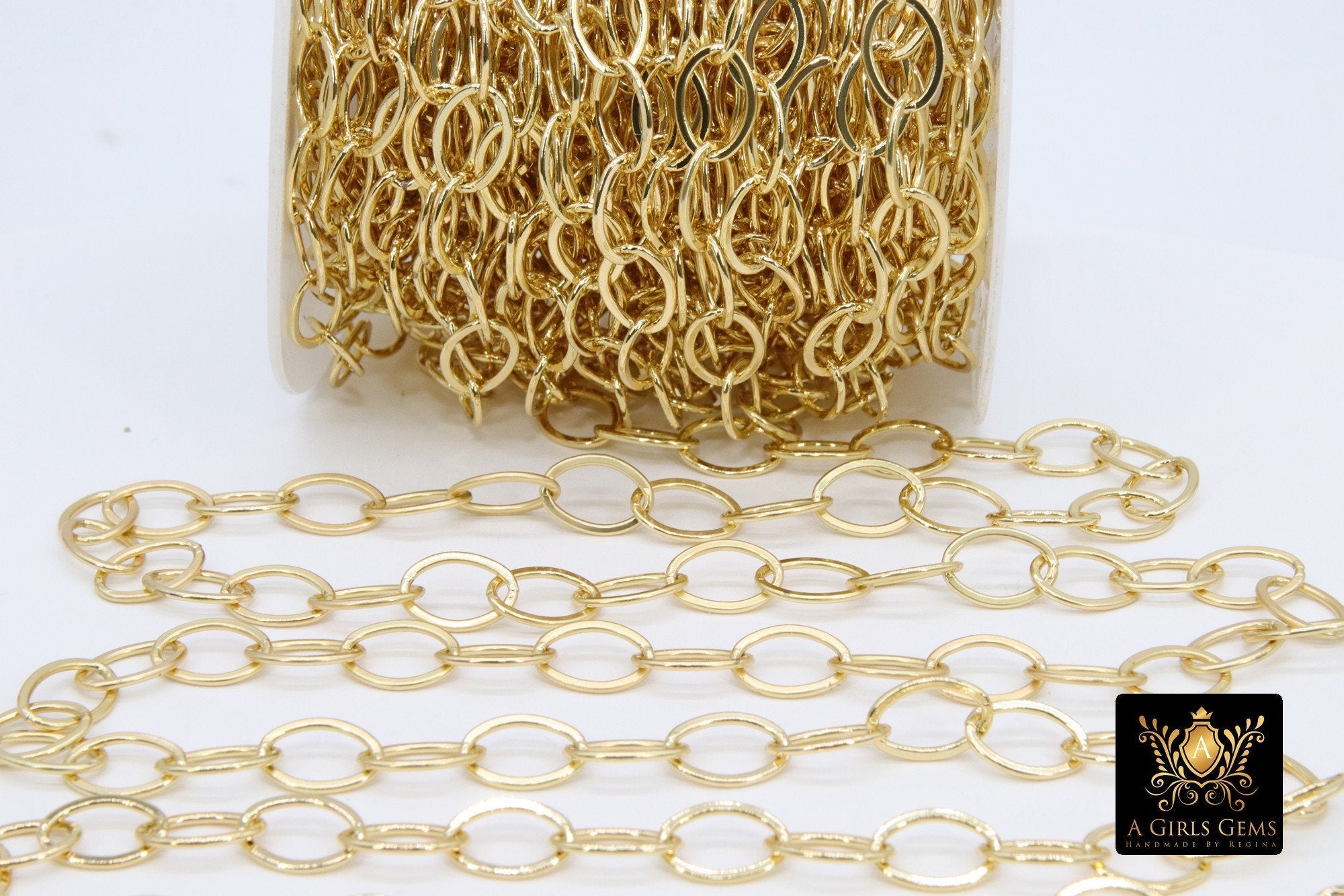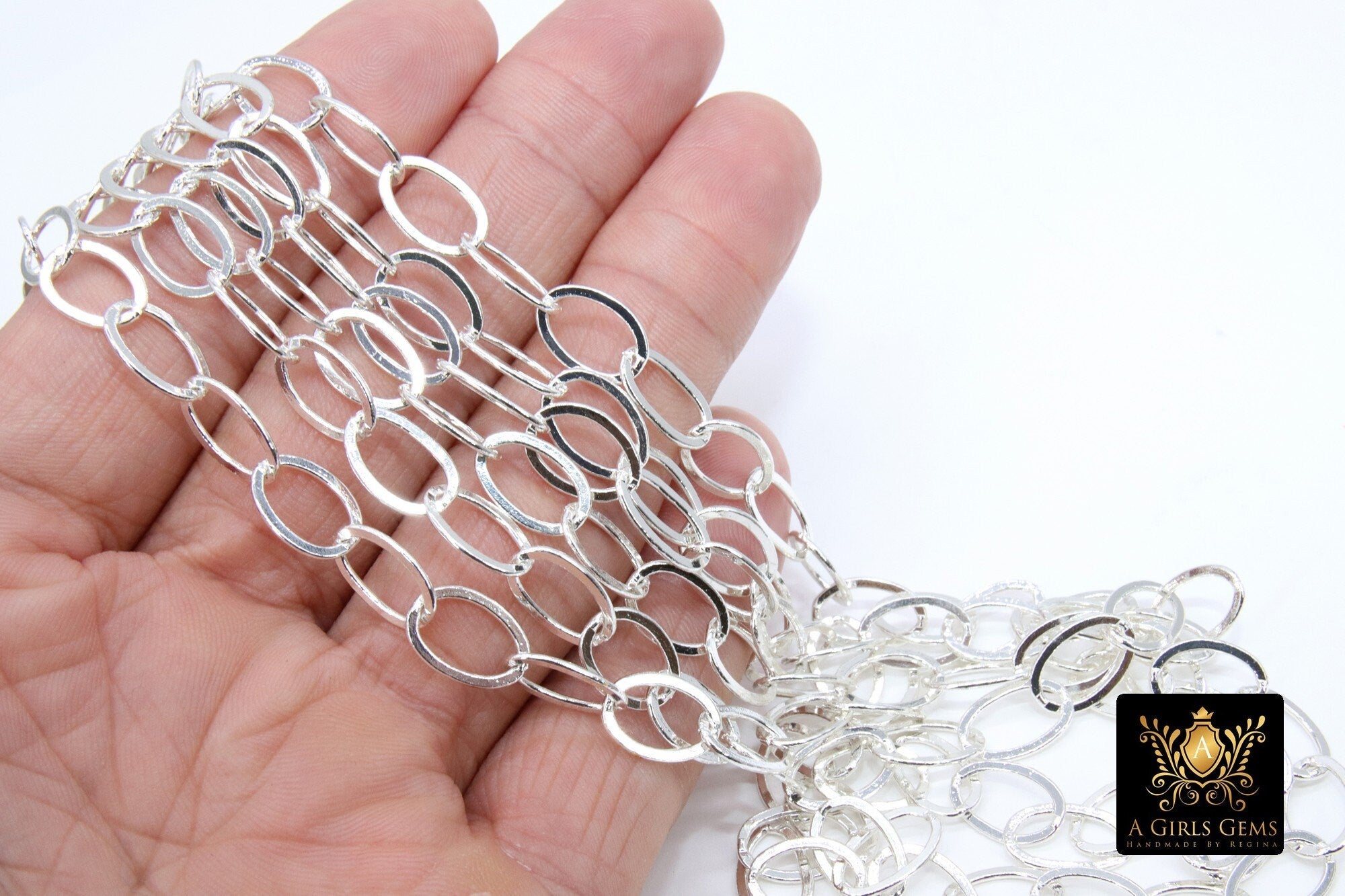 Silver Oval Chain, Gold Flat Oval Cable Chains CH #202, Unfinished 8 x 10 mm Gold Rolo Oblong Paperclip Chains