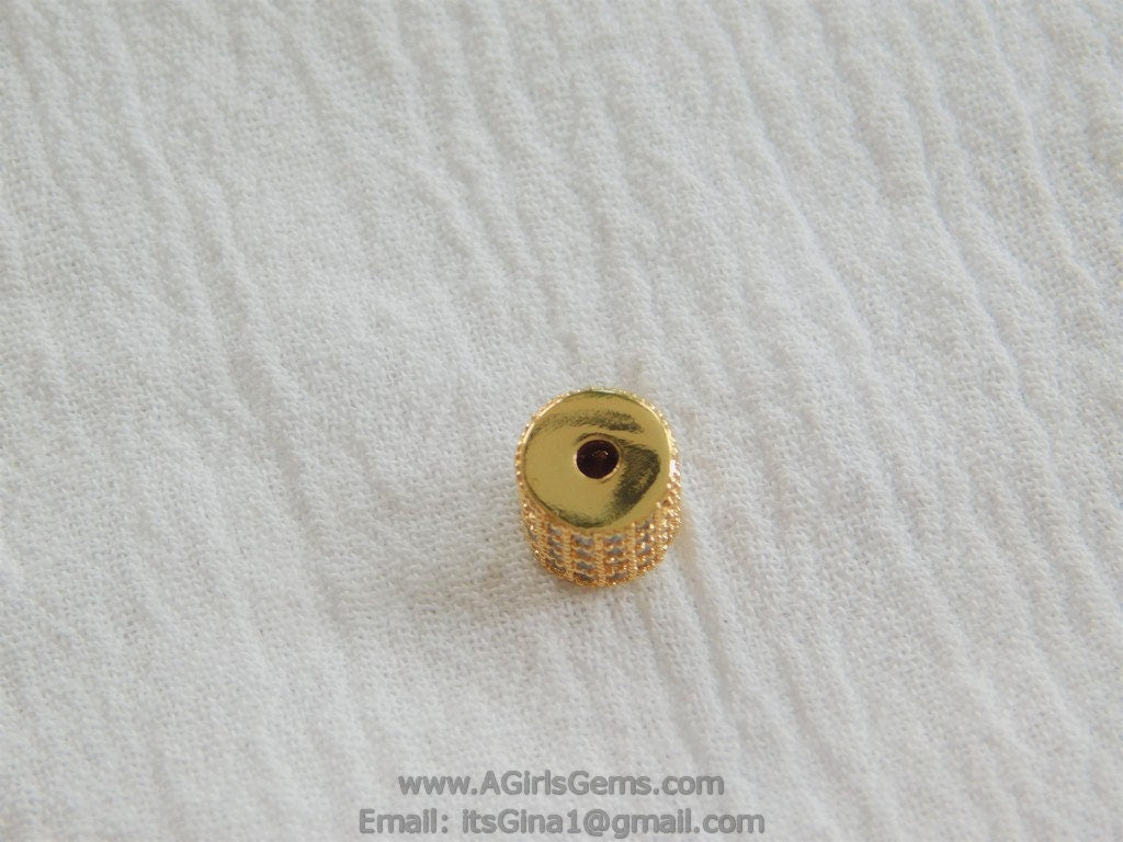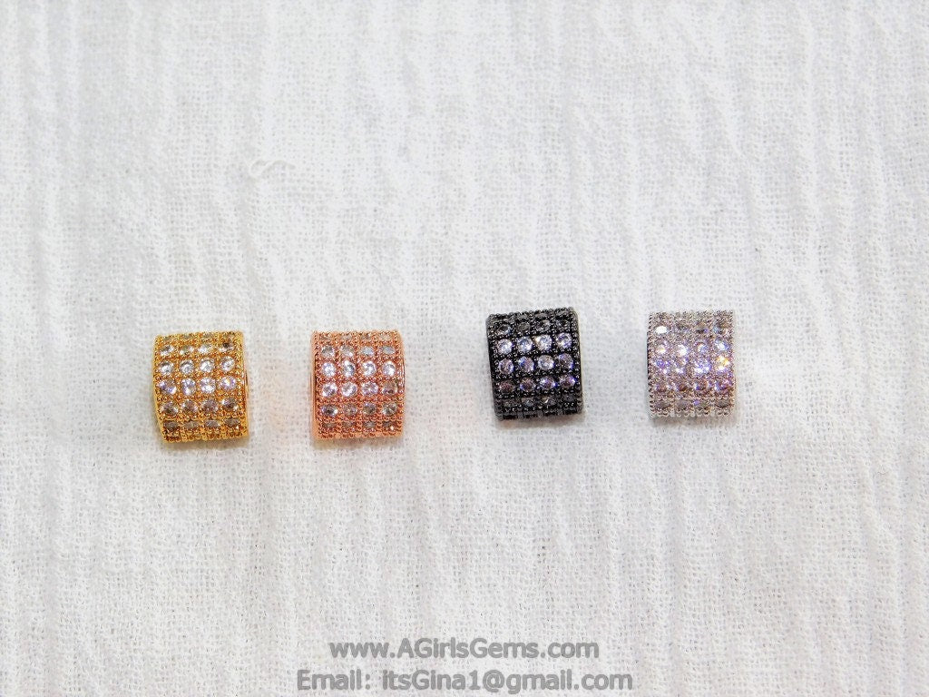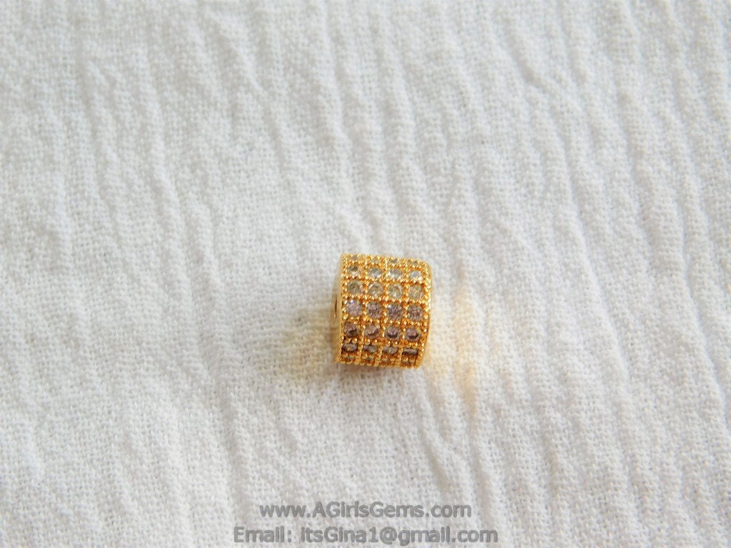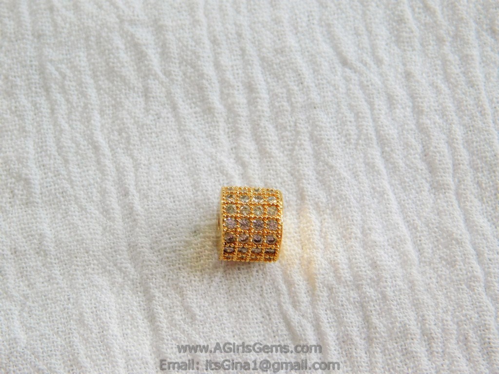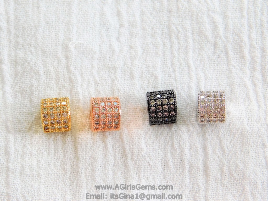 CZ Pave Barrel Beads, 6 x 8 mm Rose Gold Tube #249, Silveror Black Plated Cubic Zirconia Drum