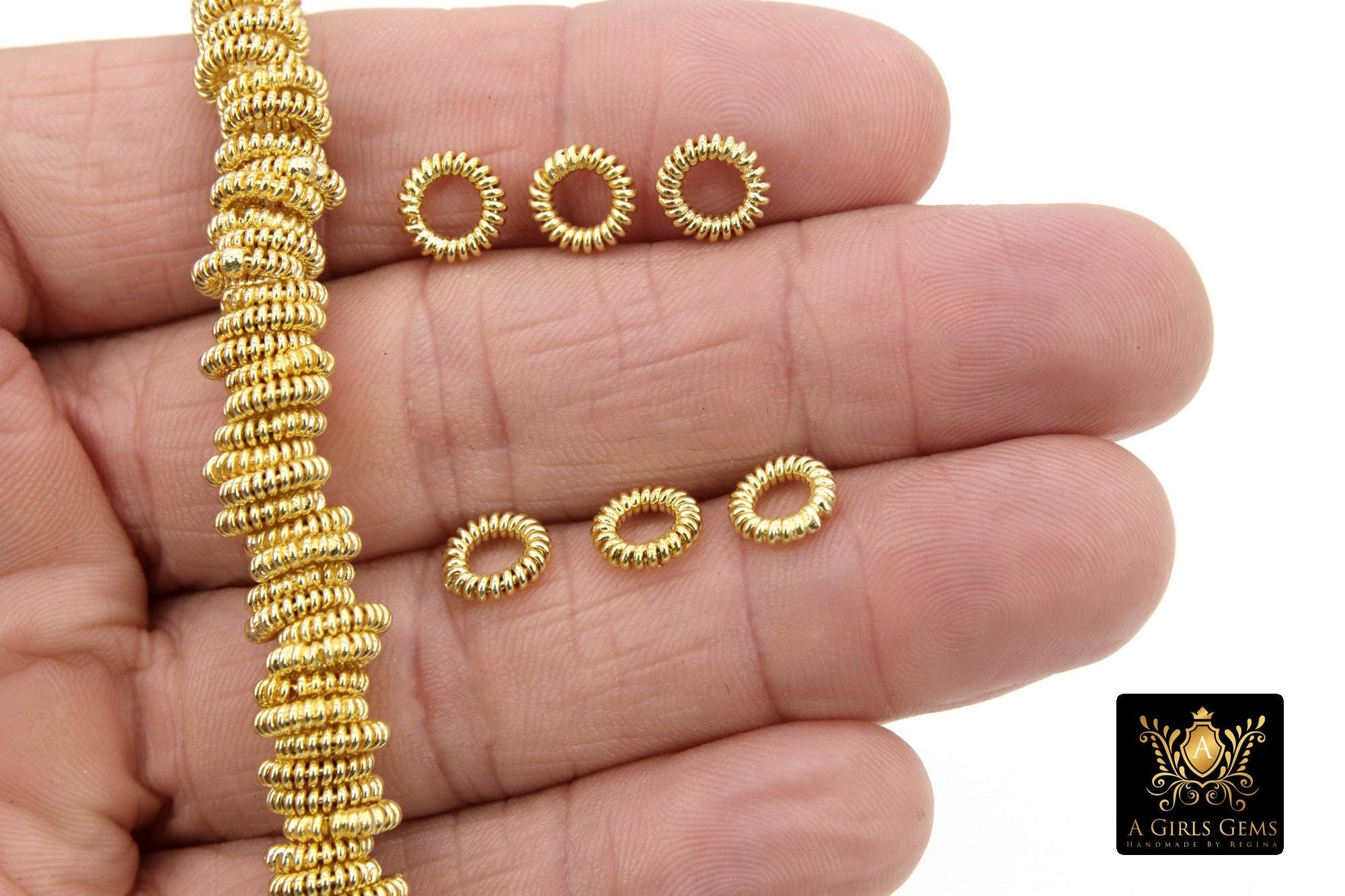 Gold Spiral Twist Spacer Beads, Round Brushed Gold Soldered Jump Rings