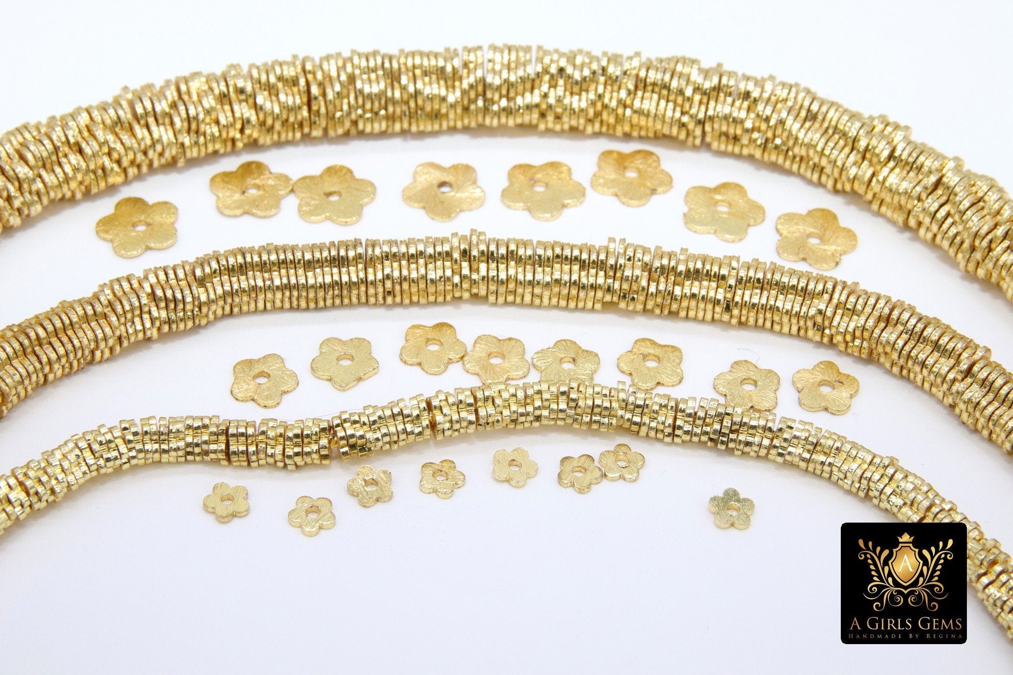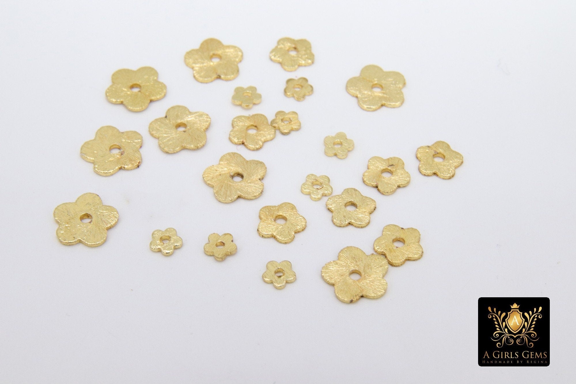 Gold Petal Spacer Beads, 20-200 pcs Round Brushed Flat Daisy Discs #2931, Flower Wavy Rondelle