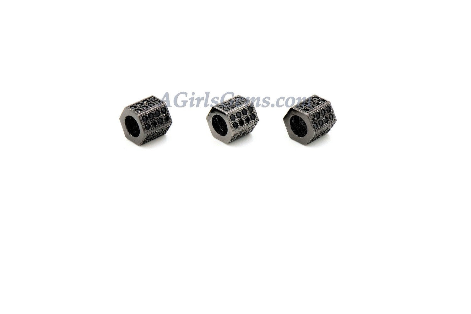 Hexagon Tube Beads, 9 x 9 mm Black CZ Pave Spacer Beads, Gunmetal Black Rhodium Plated,Large Hole Beads, Men's Beads Jewelry Findings AGGSM252