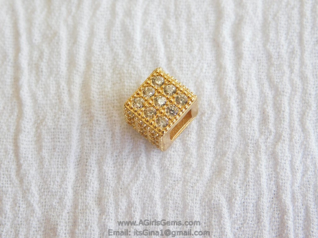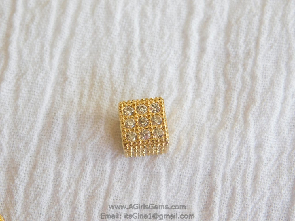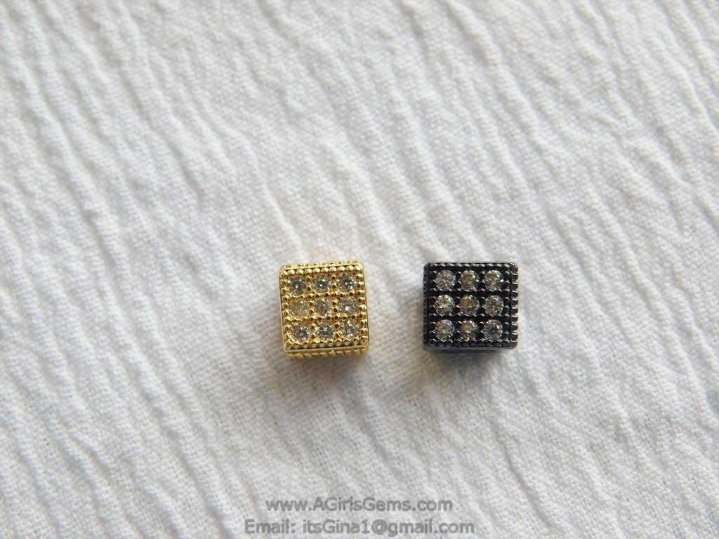 Micro Pave CZ Micro Pave Square box bead Gunmetal Black or Gold Plated Bead Clear Micro Paved Focal Bead Spacers AGGSM219