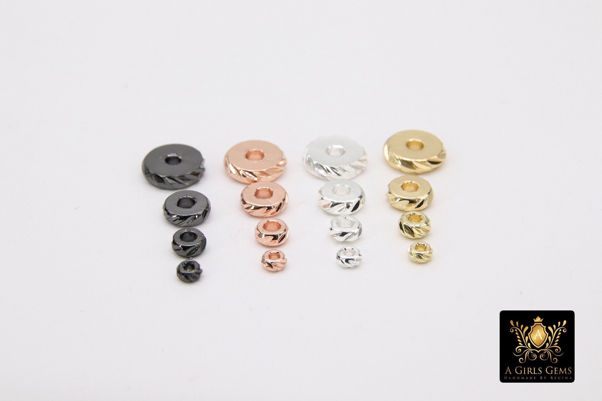 Copper Plated Rondelles made with the same Standards and High Quality of our CZ Items. Flat Spacer Disc Rondelle Beads, Black, Gold, Silver and Rose Gold