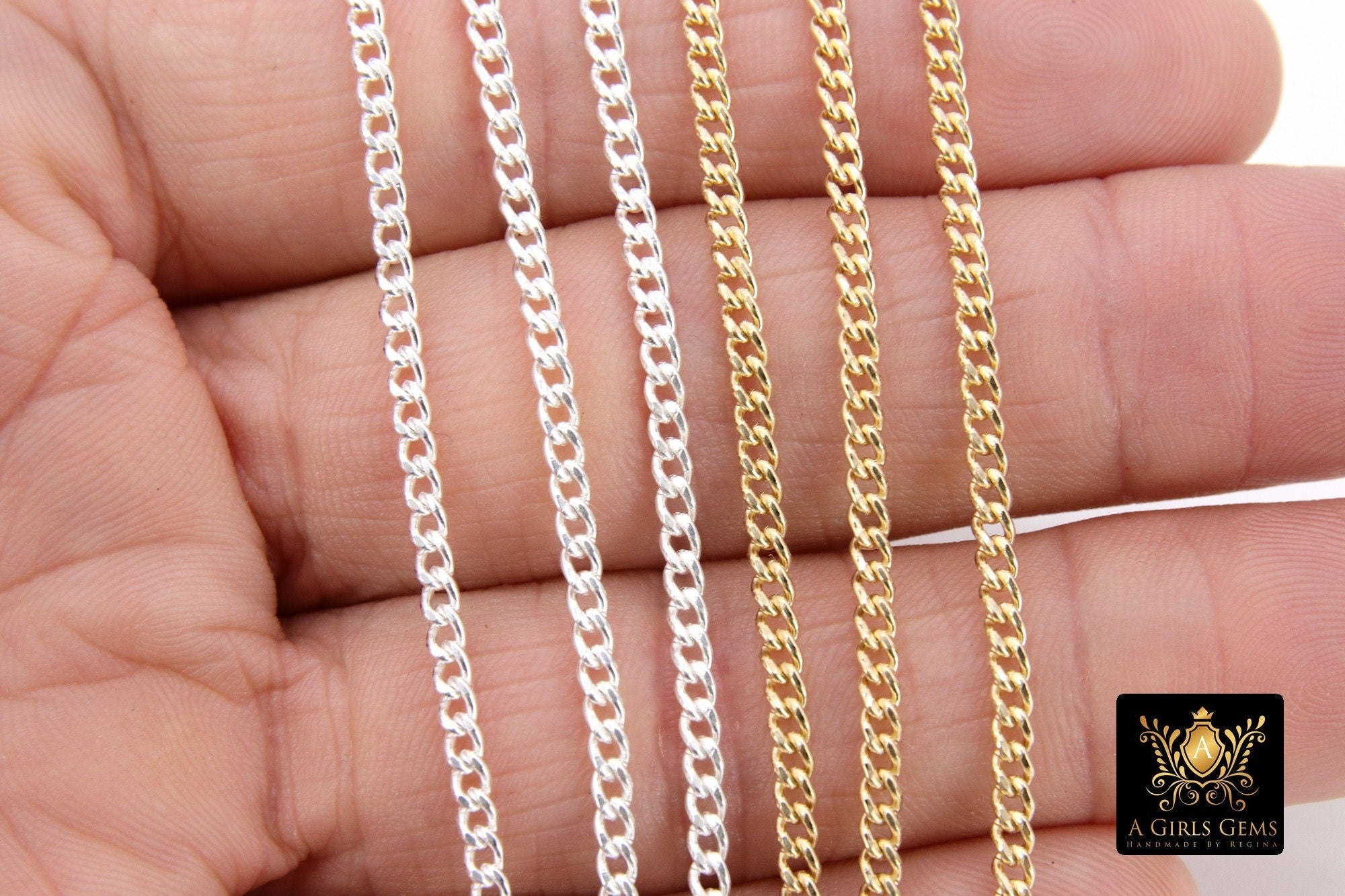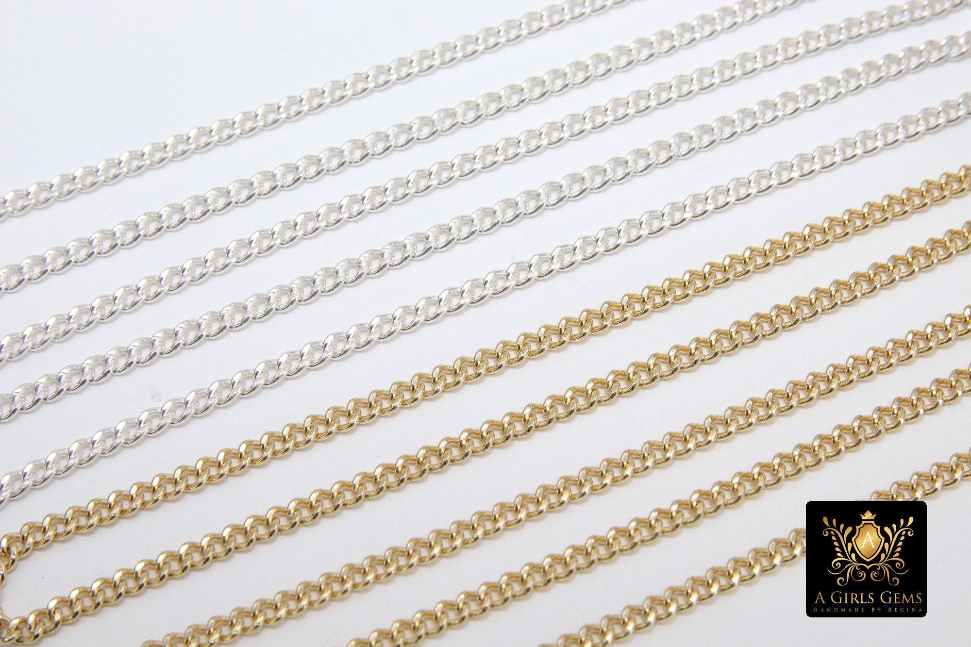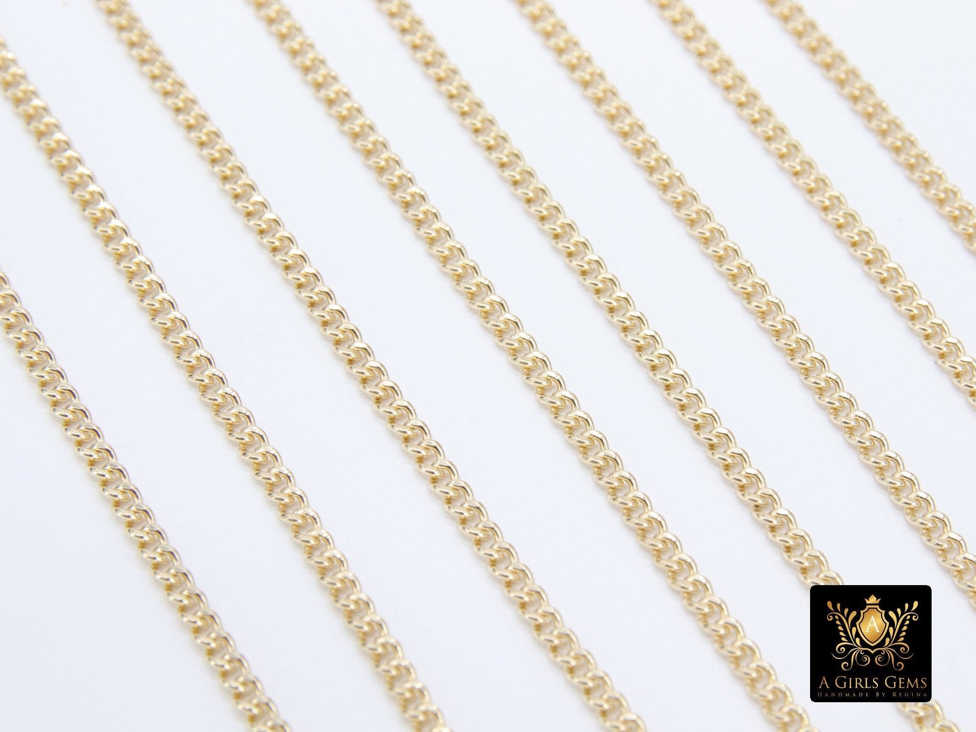 925 Sterling Silver Curb Chain, 3.5 mm 14 K Gold Filled Dainty Curb Chain CH# 809, 14 K Gold Filled Unfinished Cable CH #734