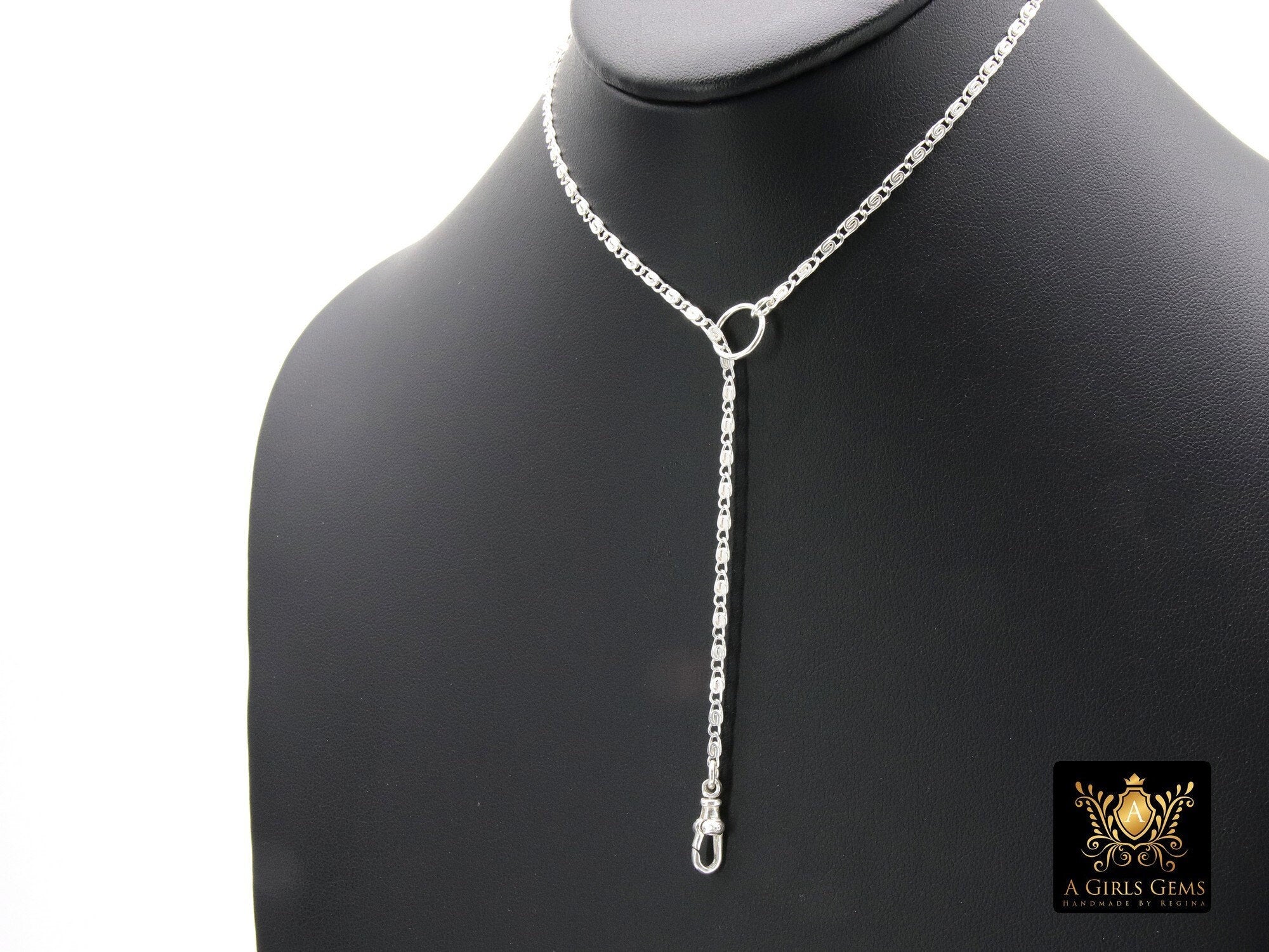 925 Sterling Silver Swivel Fob Bar Necklace, Silver Scroll Bar Chain Lariat Choker #2626, Lumachina Charm Necklace