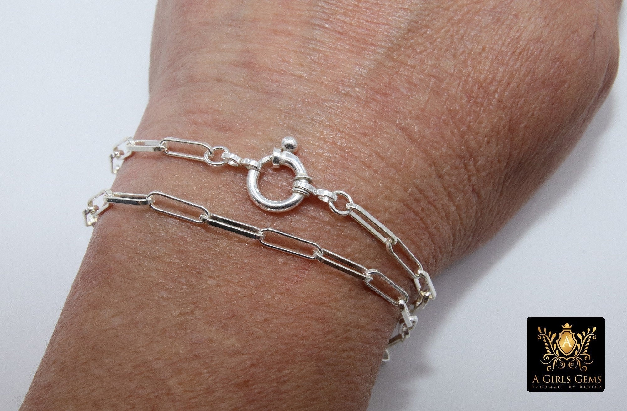 This bracelet is as seen in Picture #1 on our Largest 925 Sterling Silver Designer Rectangle Drawn Chains, ***NOT plated *** will last a lifetime. Includes a 925 Large Spring Ring clasp or Rectangle Clasp. This is a larger link chain and thicker gauge then typically seen in this style chain. This gives a bigger look to your bracelet. Other designer chains also available upon request. Our most popular lengths are below. If you need a different length, please message us with any questions.