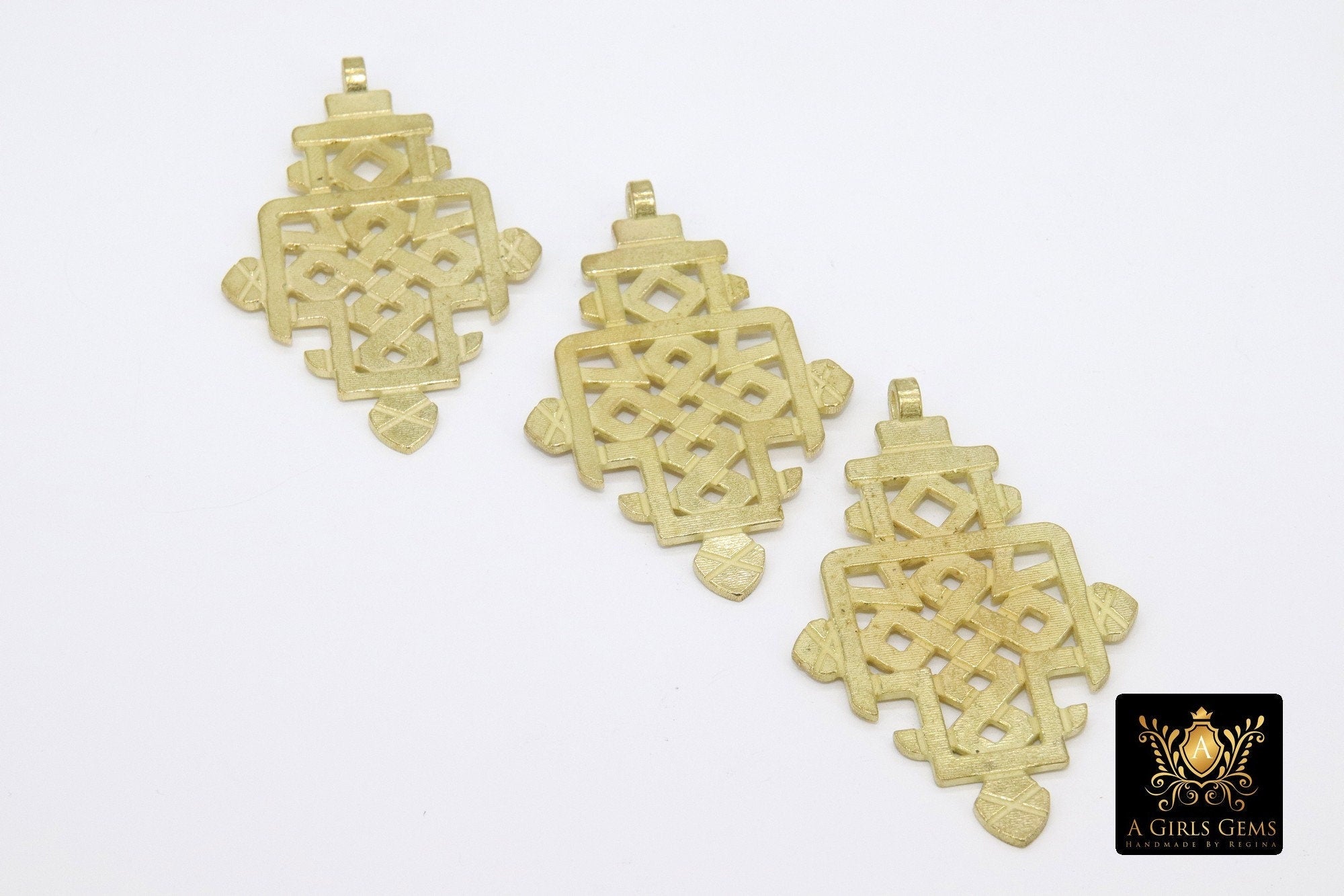 Brass Ethiopian Coptic Cross Pendant, Christian Cross Gold Brass Religious Necklace Jewelry Findings