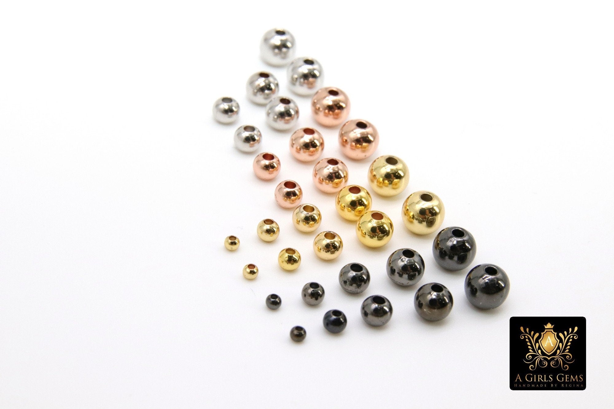 Rose Gold, Black, Silver, Gold Plated Beads, Smooth Seamless High Quality 2, 3, 4, 5, 6 mm Round Plated Brass Metal Beads Findings