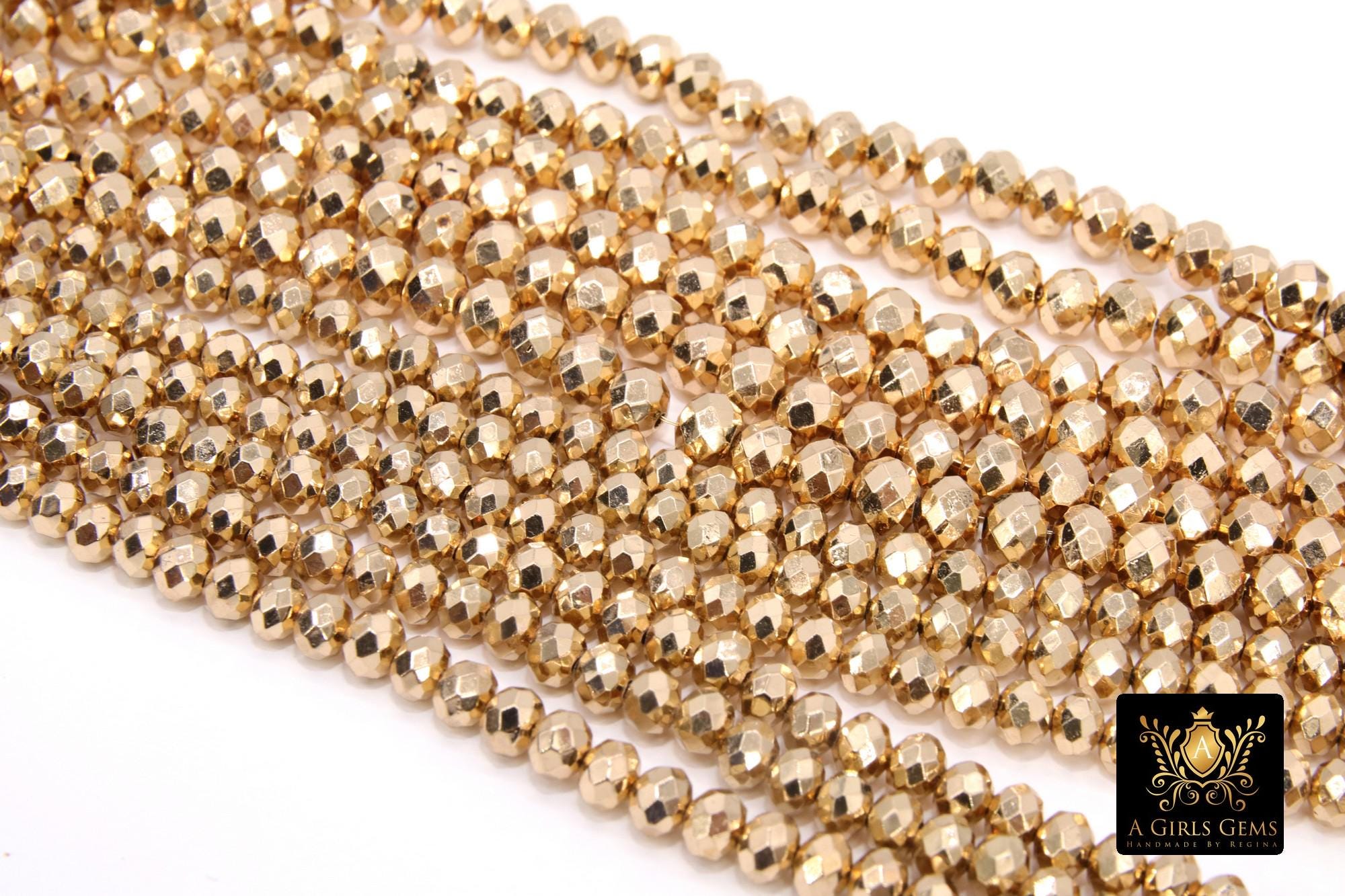 14 K Gold Color Faceted Electroplated Crystal Rondelle Glass Beads