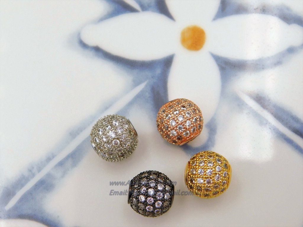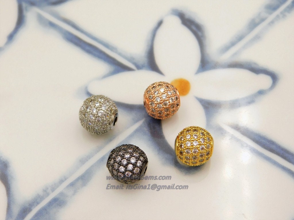 Gunmetal Black CZ Beads, *Clear* Cubic Zirconia Diamond Pave Round Beads ALL SiZES Diamond Pave 6,8,10,12,14 mm Beads Spacers Focal Beads AG #71, 79, 87, 95, 111