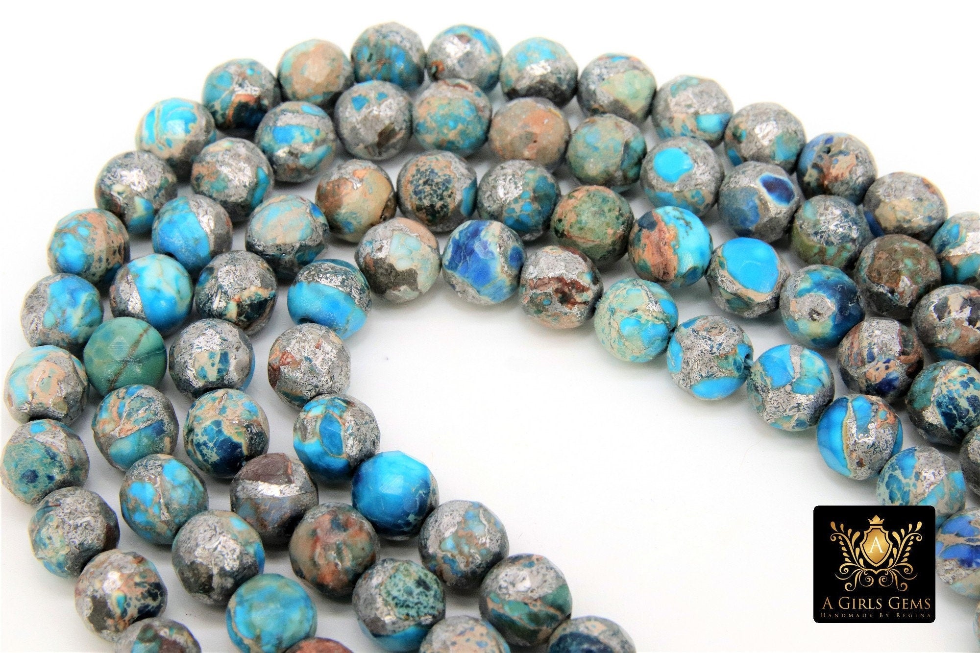 Natural Imperial Ocean Blue Jasper Beads, Round Marbleized Silver Aqua and Gray Beads BS #3, size 8 mm 14.6 in FULL Strand