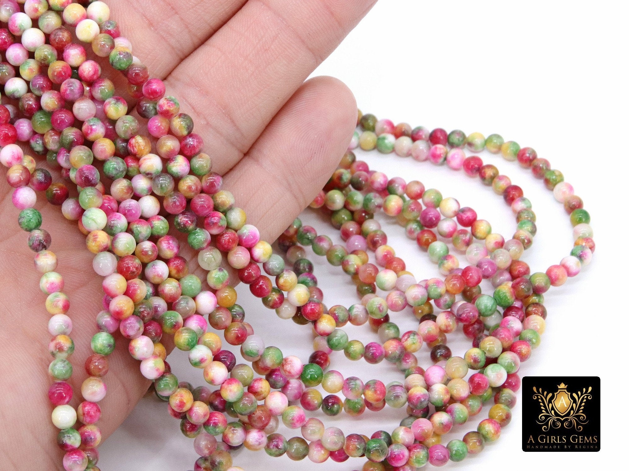 Full Strand of Pink and Mint Green, White Smooth Beads in 6 mm and 8 mm