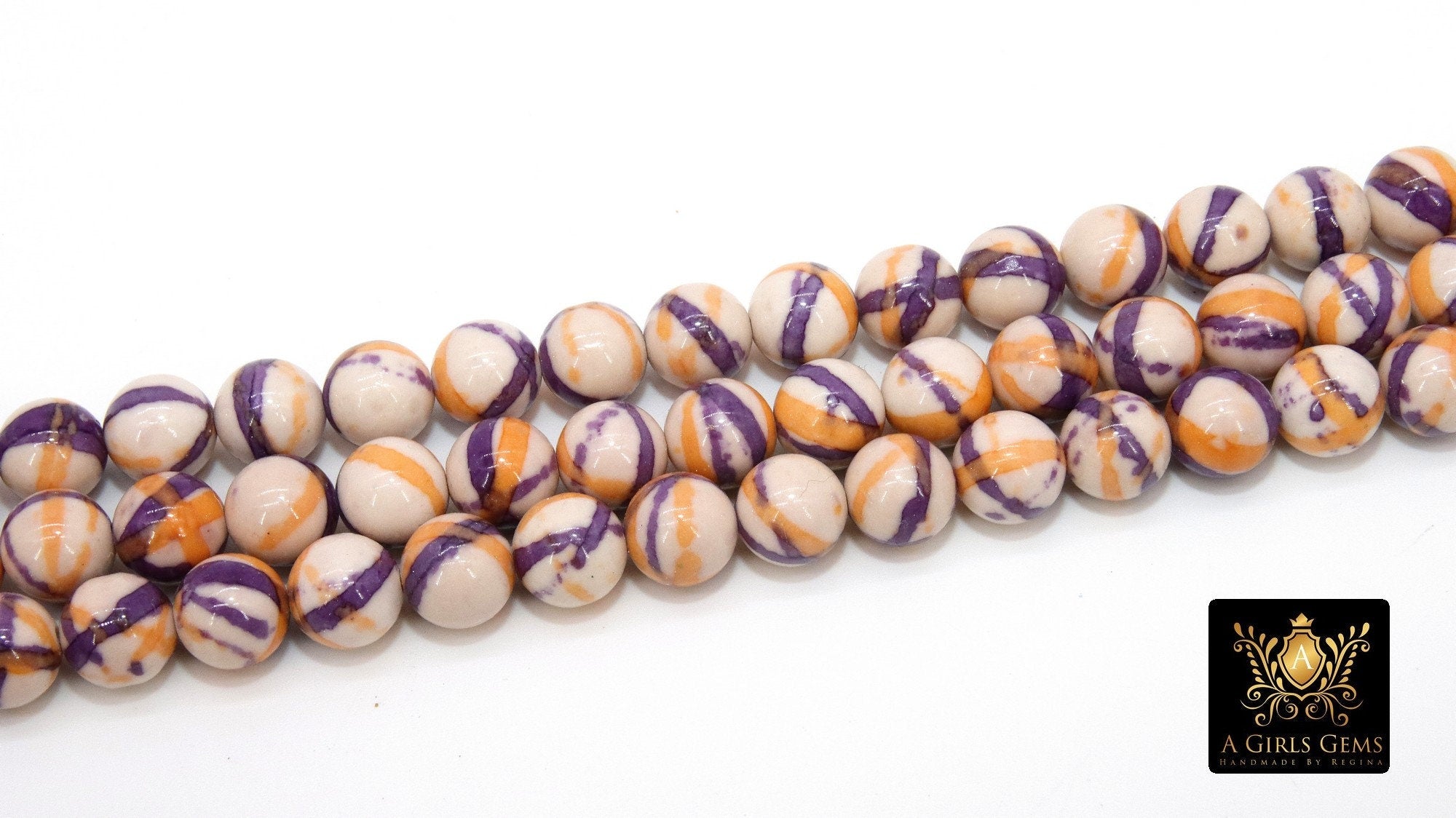 Purple and Gold Beads, Smooth Mixed Yellow Purple White Jade Beads BS# 102, LSU Jewelry Beads sizes 10 mm 15.5 inch Strands