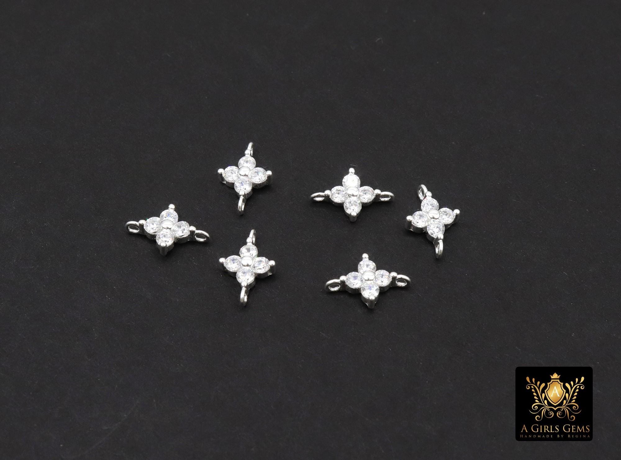 925 Sterling Silver CZ Clover Connectors, 14 K Gold Filled 6 mm Cubic Zirconia Quatrefoil Perpendicular Links # 3668, Minimulist