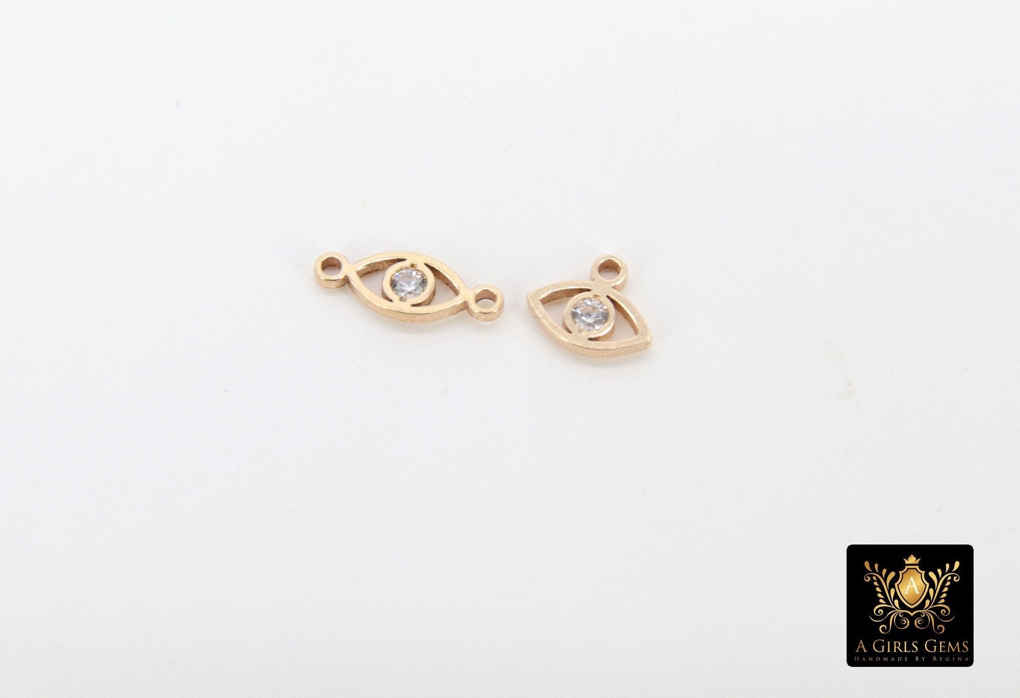 14 K Gold Filled Evil Eye Connector, CZ Micro Pave Evil Eyes Charms # 3453, Tiny Minimalist Permanent Jewelry Links