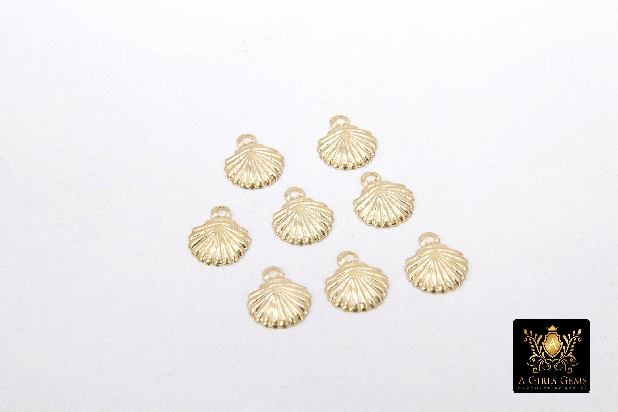 14 K Gold Filled Tiny Scallop Shell Charm, 14 20 Gold Small Seashell # 2134, 8 x 9 mm Beach charms